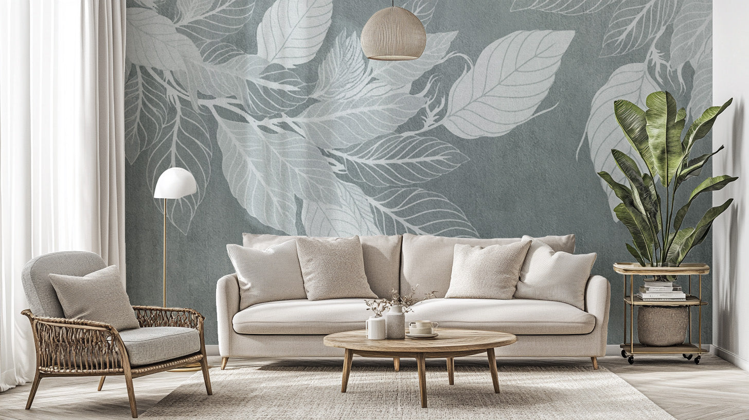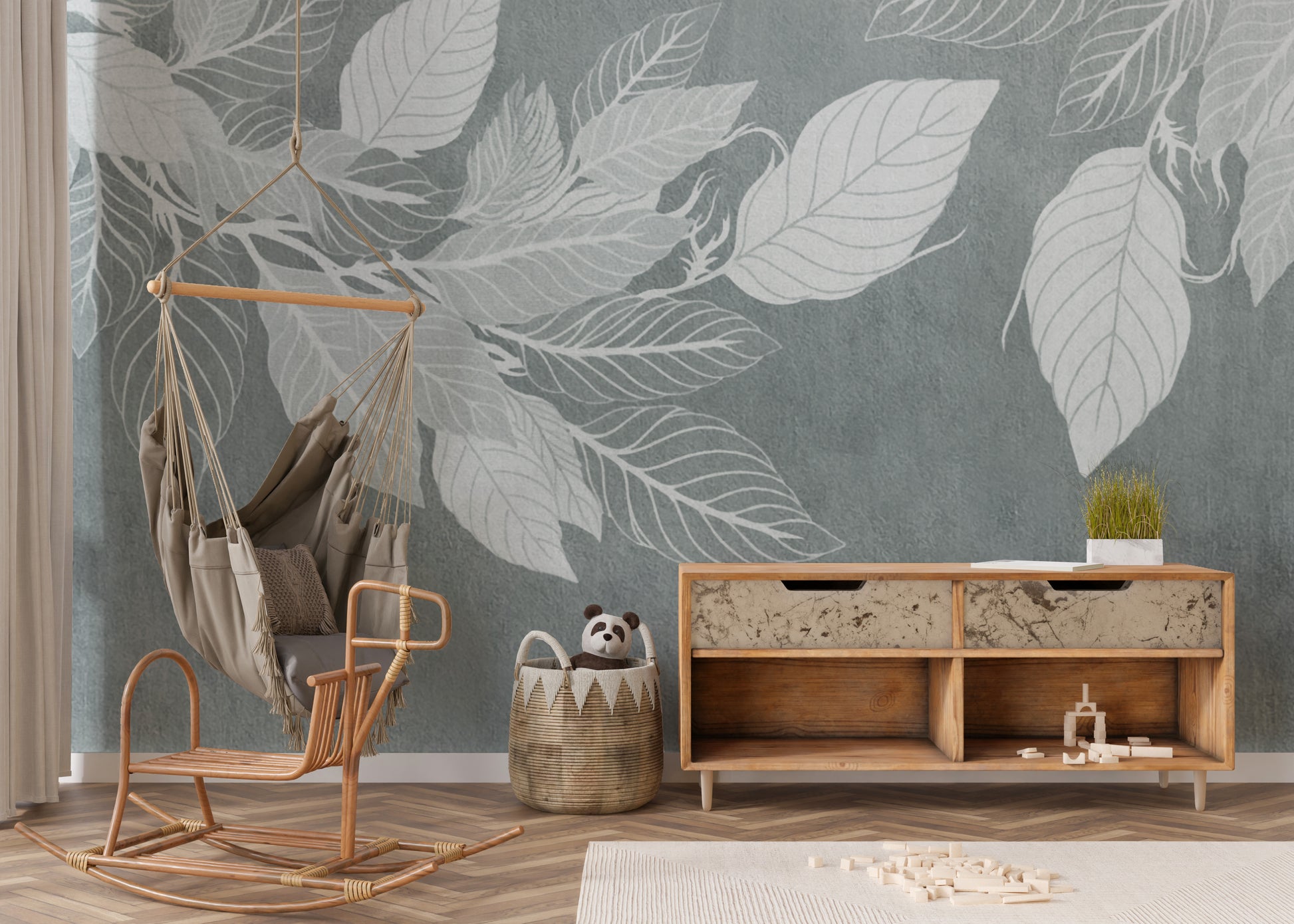 Bring nature indoors with the teal botanical leaf wallpaper mural, featuring delicate foliage in soft green and muted teal tones. The botanical wallpaper mural adds a refreshing touch to any space, creating a calming atmosphere. Designed with modern botanical wall art aesthetics, this piece blends effortlessly with contemporary and classic interiors. The textured foliage wallpaper enhances walls with an organic feel, offering a stylish update. Subtle watercolor detailing gives depth to the elegant leaf pattern wallpaper, making it a perfect choice for bedrooms, living rooms, or offices. The durable material ensures long-lasting beauty while maintaining a refined, nature-inspired aesthetic.