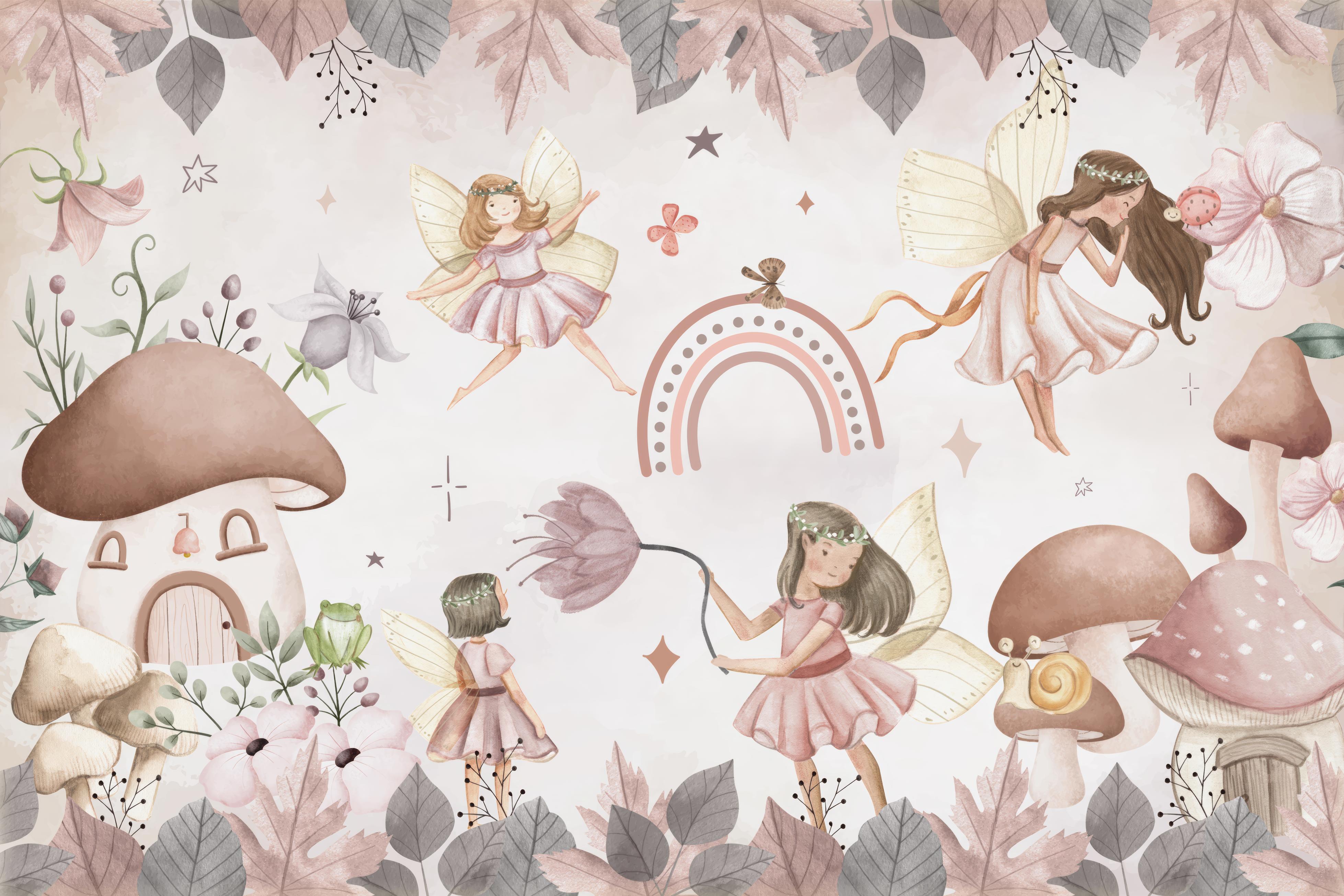 Explore the allure of the enchanted forest fairies wall mural for your girls room wallpaper, designed to captivate and inspire. This magical mural sets the scene with its array of fairies frolicking in a pastel-hued forest, inviting the charm of mythical tales right into your home. It goes beyond aesthetics; it fuels the imagination, providing a backdrop for childhood adventures and fairytales. Its durability and ease of application make it a practical choice for busy families, creating a lasting narrative in your child's personal space. Perfect for dreamers and believers in the whimsical, this mural promises to be a fixture of joy and inspiration.