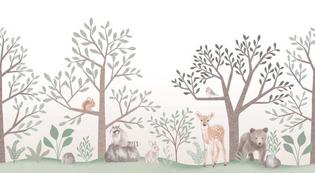 Nature-inspired wallpaper for kids with woodland animals