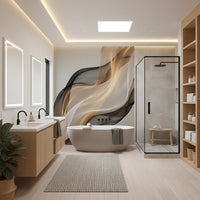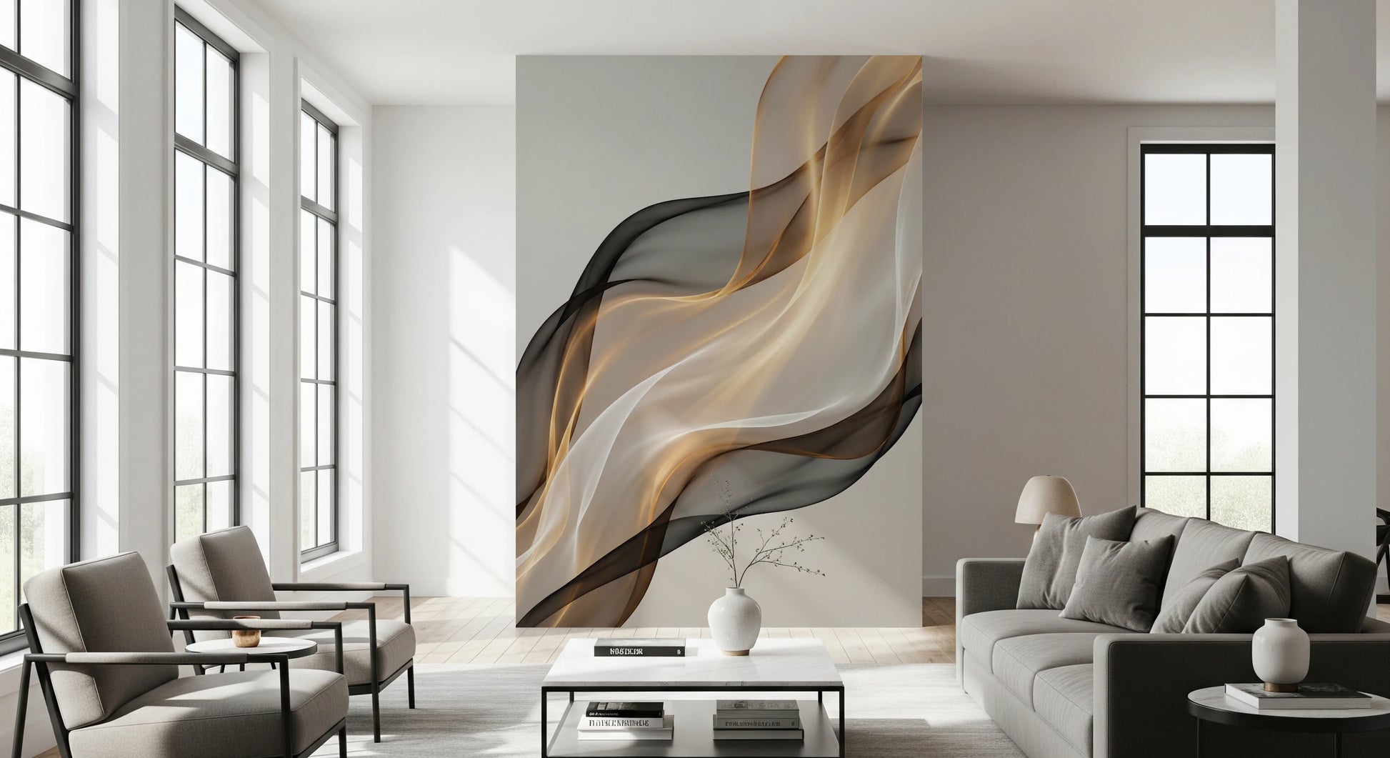 Introduce a touch of elegance with this stunning wallpaper for walls. Delicate ribbons of black, white, and gold intertwine, creating a fluid, dynamic pattern that adds depth and visual interest to any room. The subtle color palette allows this design to blend seamlessly with existing decor, brightening living rooms, bedrooms, and dining areas. Install this wallpaper to create a sophisticated backdrop that enhances both modern and classic interior styles. Bring the beauty of abstract art into your home with this captivating design.