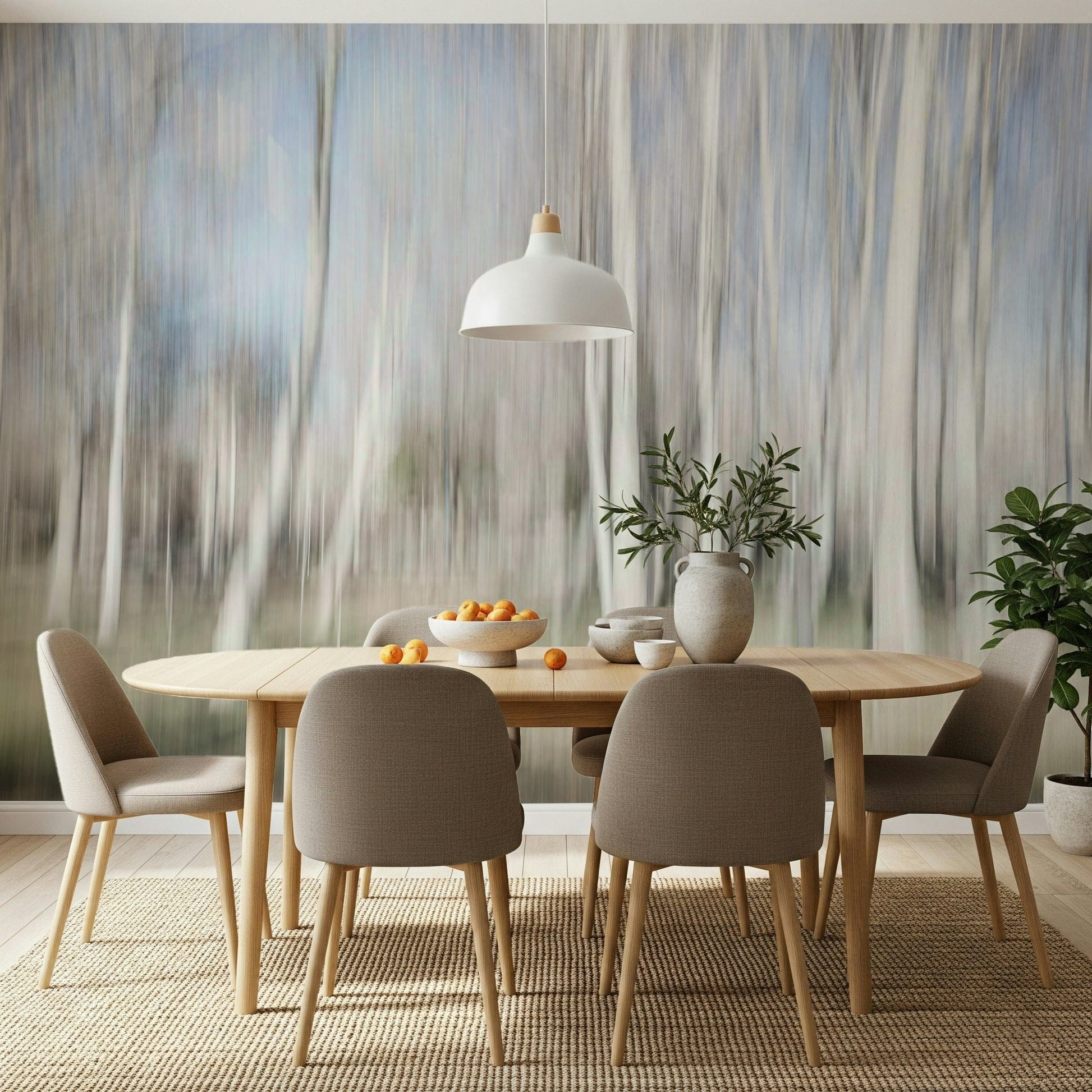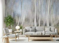 Experience the magic of a forest bathed in gentle light. This abstract design features blurred trees and a subtle color palette, creating an ethereal and dreamy mood. The light white and gray tones make this wallpaper for walls an ideal choice for bedrooms and living rooms, promoting tranquility and calmness. It nicely complements minimalist interiors, offering a sense of openness and peace. It also works in nurseries as a neutral and relaxing image.