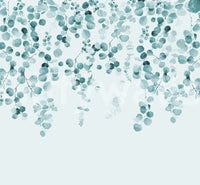 Soft teal eucalyptus design wall covering