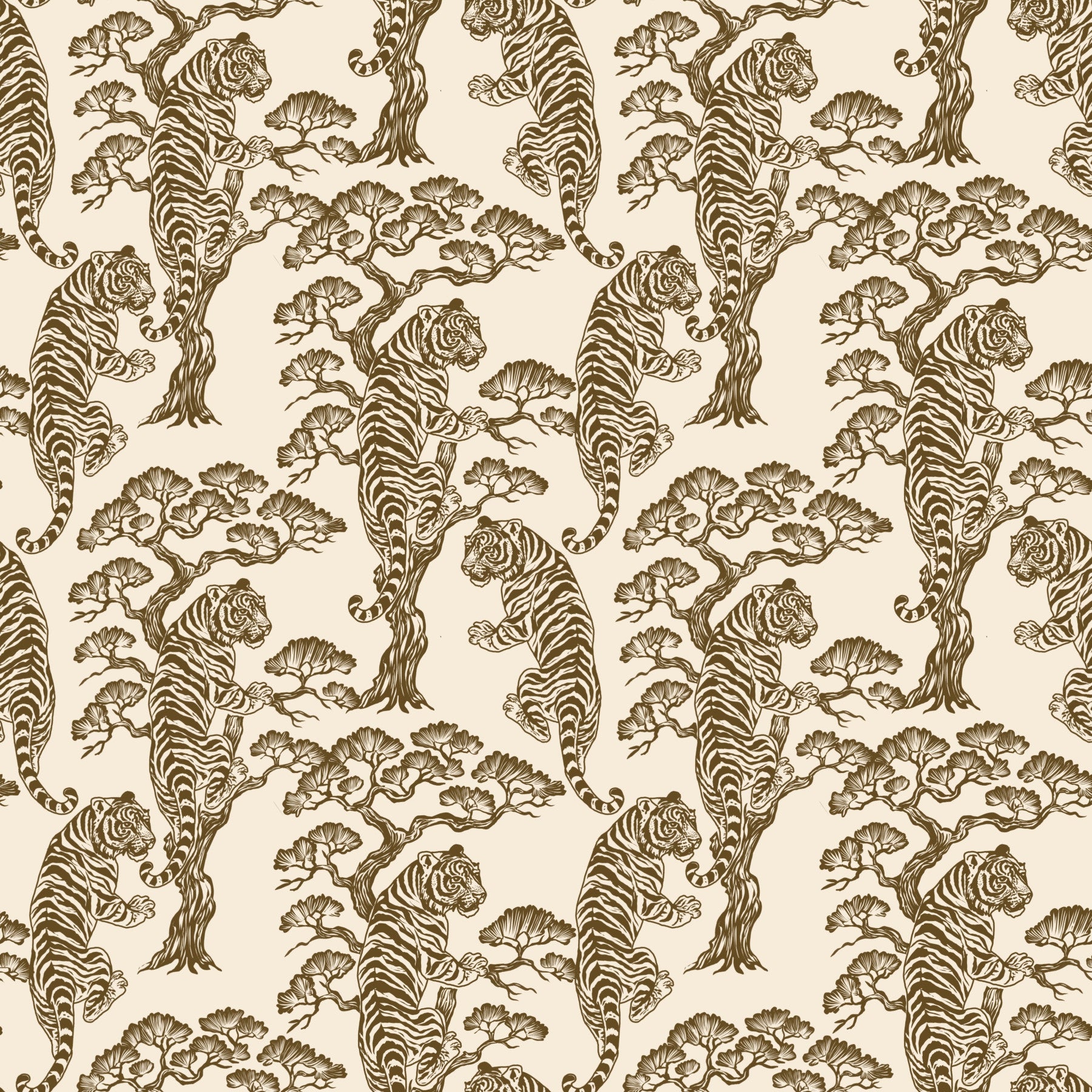 Embrace a touch of the orient with this bold animal-inspired design. The wallpaper for walls features leaping tigers nestled amidst graphic branches, creating a bold patterned display. The timeless style in earthen tones will offer a stunning look for your dining room, study, or bedroom. The artistic touch makes a classic design versatile for many interior styles from minimalist to maximalist. Set an elegant and refined backdrop with a vintage twist.