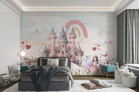 Whimsical castle with a unicorn and rainbow for a magical room setting