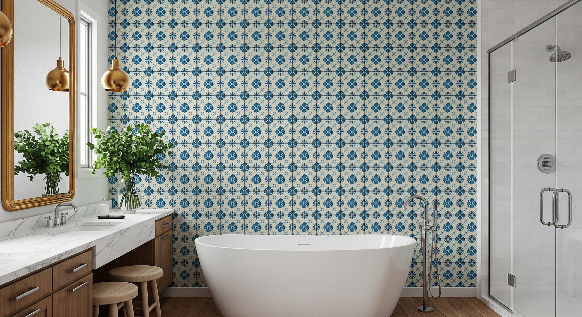 Farmhouse Classic Backsplash Blue Wallpaper⁠