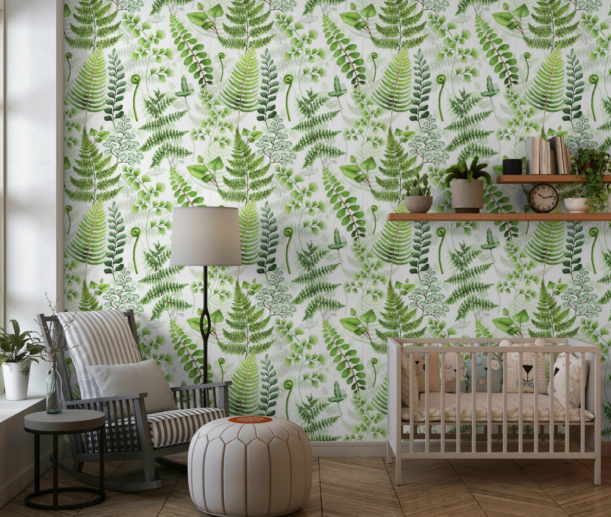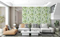 Dive into the serene beauty of nature with this captivating fern-themed wallpaper by Uta Naumann. The delicate watercolor design features an array of fern varieties in soft, muted greens. The fresh botanical motif brings a calm and refreshing ambiance to any space. Perfect for a bedroom, living room, or bathroom, this wallpaper for walls creates a peaceful retreat. Embrace the tranquility of the forest and transform your interiors with its light and airy aesthetic. Elevate your decor with nature's elegance.