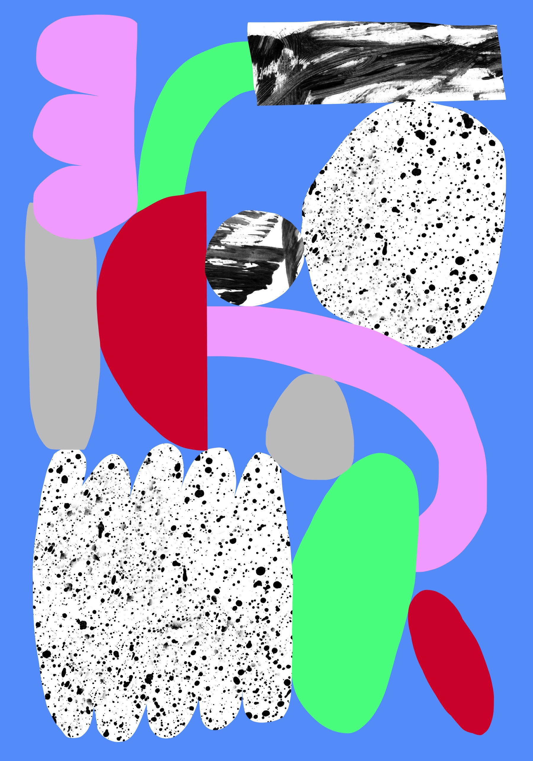 Dive into the playful world of Flakes an abstract wallpaper that celebrates the beauty of imperfection and whimsical design. Against a serene blue backdrop, an assortment of geometric and organic shapes dance in delightful harmony. Imagine scattered confetti frozen in time, each 'flake' a unique expression of color and texture. From the bold splashes of red and vibrant green to the softer hues of pink and grey, a lively palette invigorates the senses. Adding depth and intrigue, speckled white forms and gestural brushstrokes create a compelling visual contrast. These elements inject a sense of raw artistry and add a tactile quality, reminiscent of handcrafted artwork. 'Flakes' is more than just a wallpaper; it's a celebration of creativity, a reminder to find joy in the unexpected, and a stylish statement that brings a touch of playful sophistication to any space.