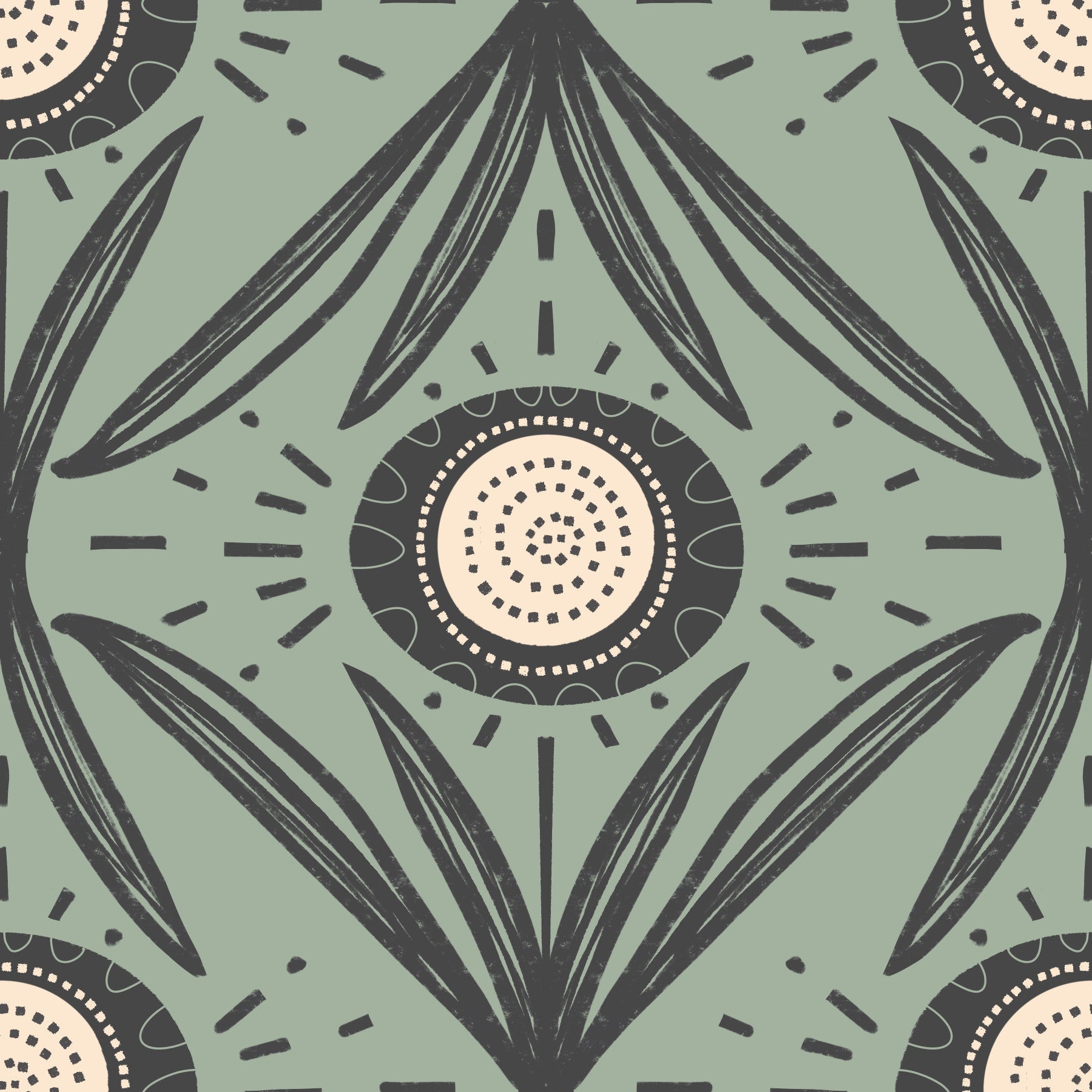 Folk Bloom Radiance Charcoal Sage wallpaper design