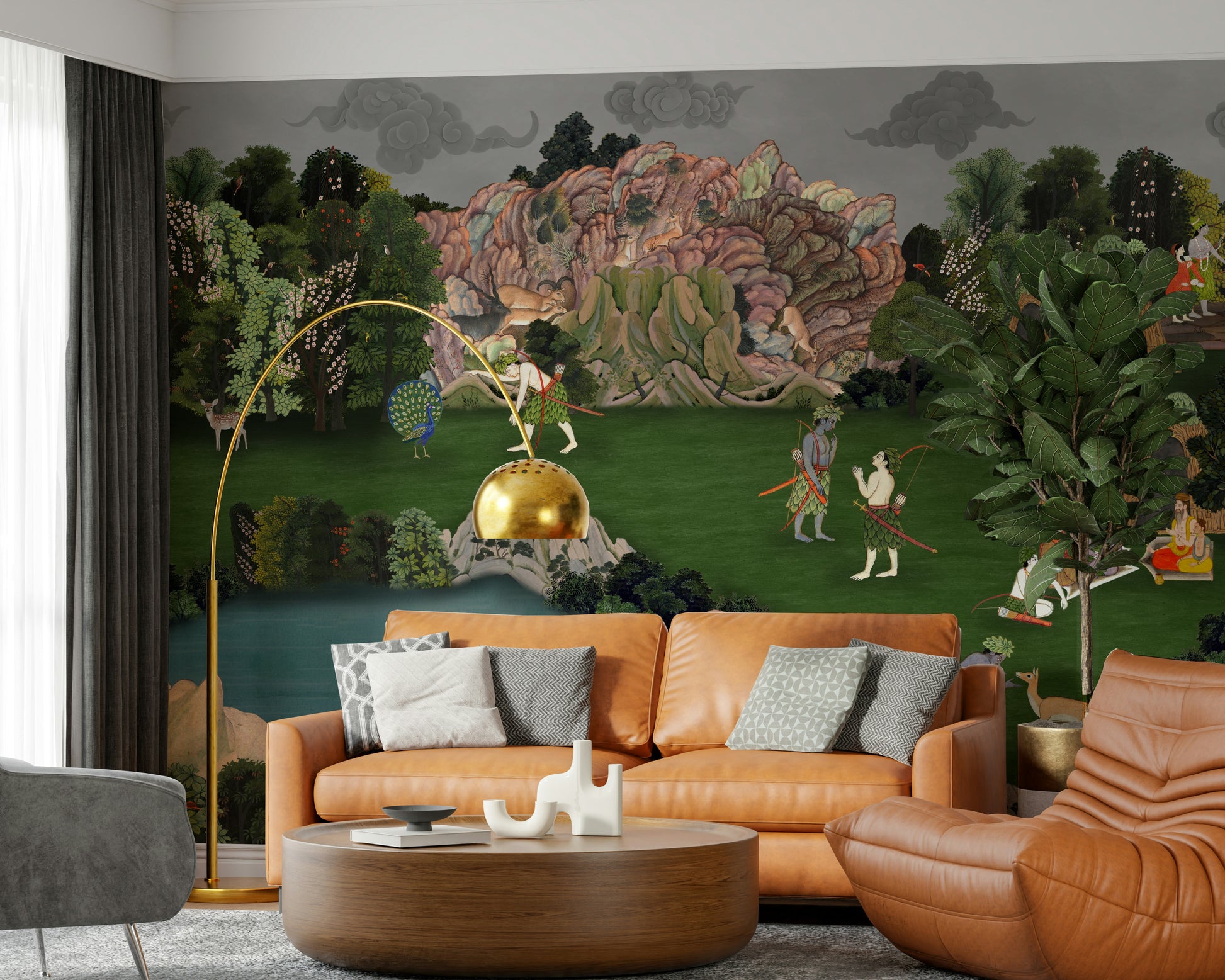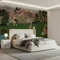 Transform your living space with this captivating wallpaper for walls. Featuring a mystical forest scene reminiscent of ancient tales, it brings an enchanting touch to any room. Verdant greens blend with earthy browns and gentle blues to create a calming, immersive environment. The detailed imagery transports you to a serene landscape, perfect for bedrooms, living rooms, or reading nooks. Invite nature's tranquility indoors and craft a space that speaks to your love of art and history. This design enriches walls with its serene story and refined color palette.