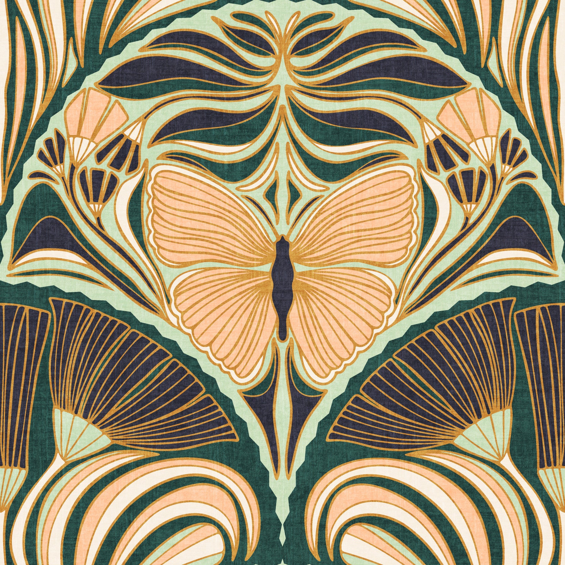 Vintage Art Deco wallpaper featuring butterfly motifs
