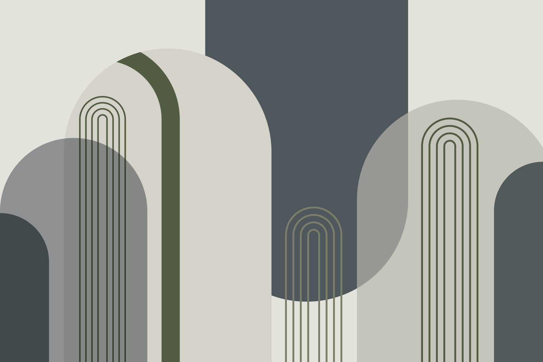 Invite a serene atmosphere with this elegant wallpaper. It showcases soft arches and vertical lines in gentle tones of beige, blue gray, and olive green. The design promotes relaxation, ideal for bedrooms, living rooms, or a tranquil office. Apply this wallpaper for walls and transform your space. Its modern style easily complements a variety of interiors, including Scandinavian and contemporary designs. The subtle color palette adds warmth and depth, making any room feel welcoming.