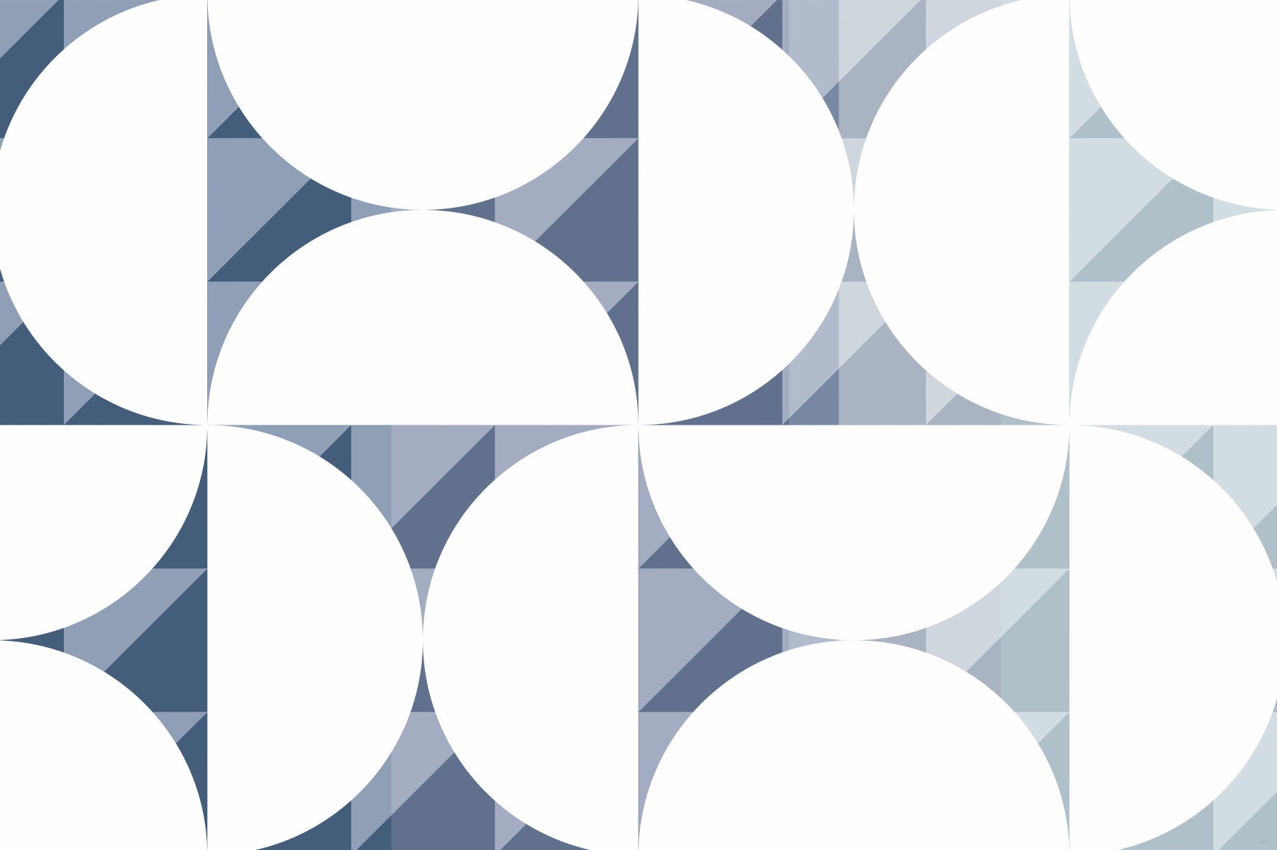 Bring modern style to your home with this striking geometric wallpaper. This design features interlocking semicircles filled with a range of blue hues and triangular shapes. The cool tones evoke a calm mood, making it great for bedrooms and living areas. With its repeating pattern and clean design, this wallpaper for walls introduces a touch of contemporary elegance to any space. The pattern can complement both minimalist and maximalist interiors.
