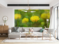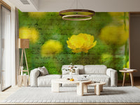 Beautiful Yellow colored Anemone flowers in garden. Infuse your home with the charm of a bygone era using this vintage-inspired floral wallpaper. Featuring elegant old-world script overlaid with a soft, sunny flower, it exudes a timeless appeal. The design in shades of green and yellow provides a warm and soothing atmosphere perfect for a bedroom or living room. Transform any room into a peaceful sanctuary with this refined print. Using this wallpaper for walls is an easy way to add character and depth. It offers a versatile backdrop that seamlessly combines with vintage, contemporary, or rustic style decor.