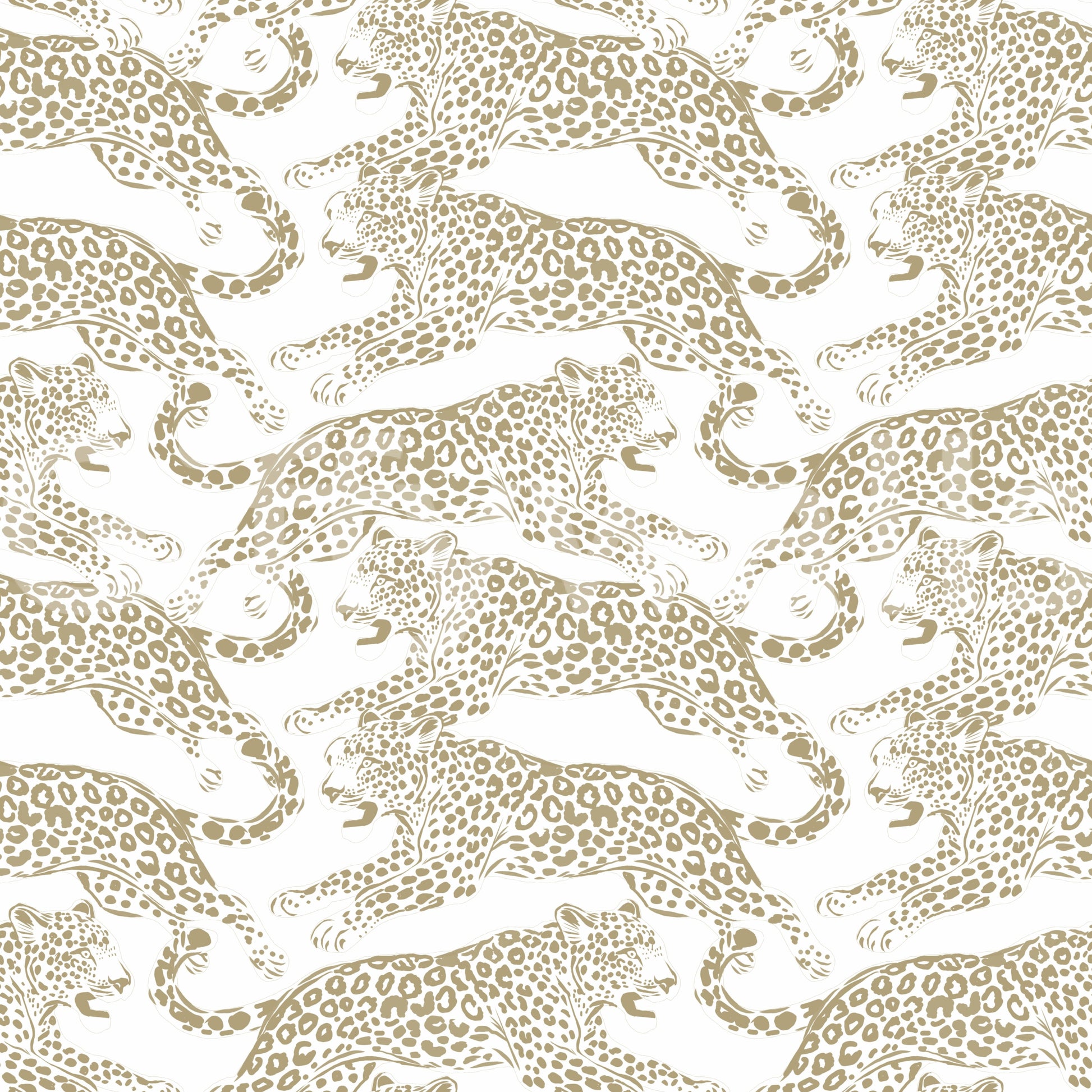 This design captures the wild beauty of leopards in motion. The pattern features repeated jaguar motifs in a rich golden hue against a crisp white backdrop. Perfect for a bold statement in a living room, bedroom, or hallway. Elevate your interior design with this pattern. This wallpaper for walls brings a touch of the exotic inside. It pairs nicely with minimalist decor, adding richness without overpowering the space. Imagine this in a study, invoking focus and natural strength.