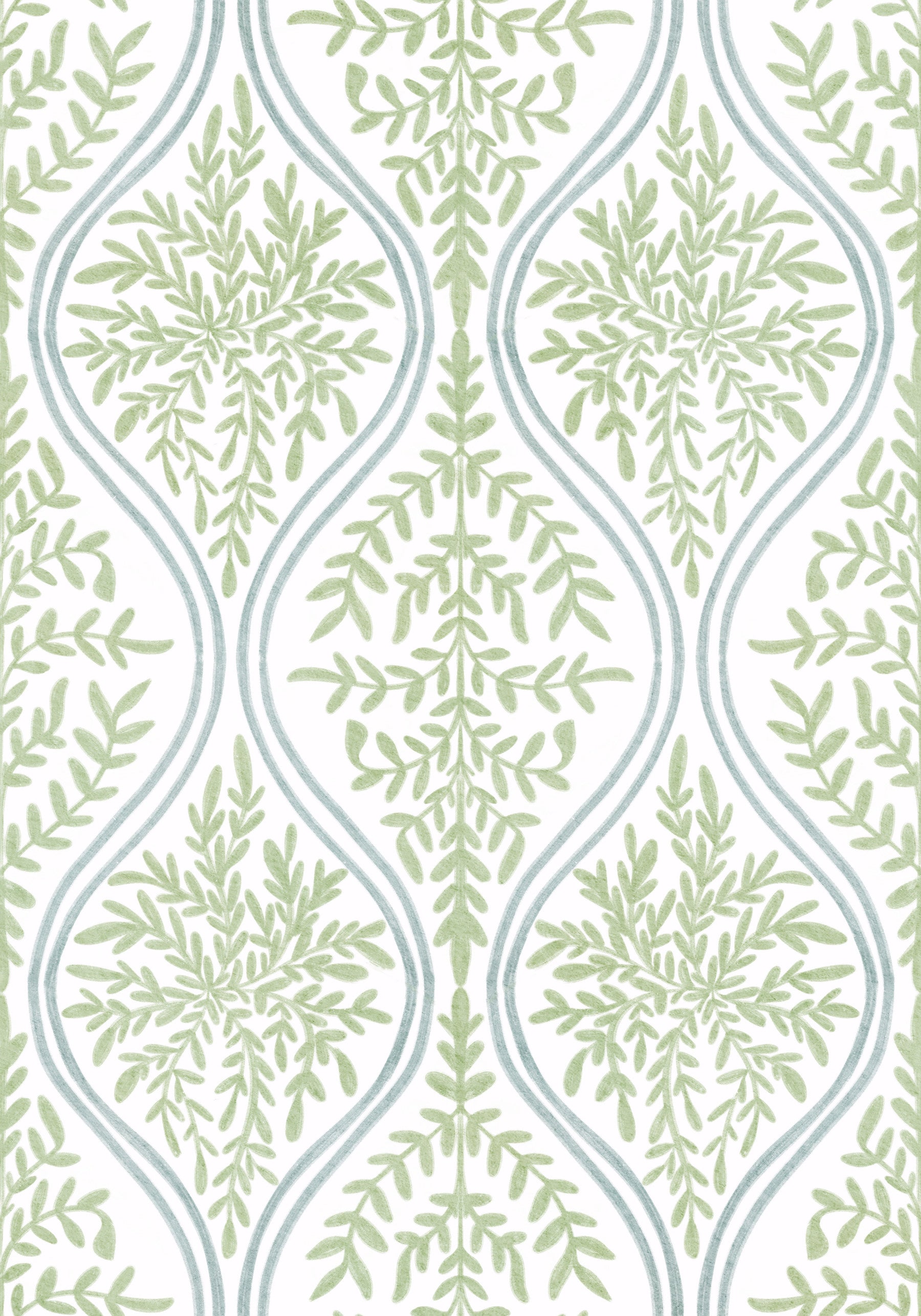 Embrace understated elegance with this wallpaper featuring a refined damask design in soft sage green. The intricate leaf motif, rendered in a delicate hand-drawn style, creates a subtle yet impactful pattern. This wallpaper's calming color palette and elegant design are perfectly suited for creating a peaceful ambiance in living rooms, bedrooms, or hallways. The timeless appeal of the damask pattern blends seamlessly with various interior styles, adding a touch of sophistication and visual interest without being overpowering. The soft, muted tones create a serene atmosphere, inviting relaxation and tranquility.