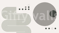 Geometric retro mural with circles and curves in grey