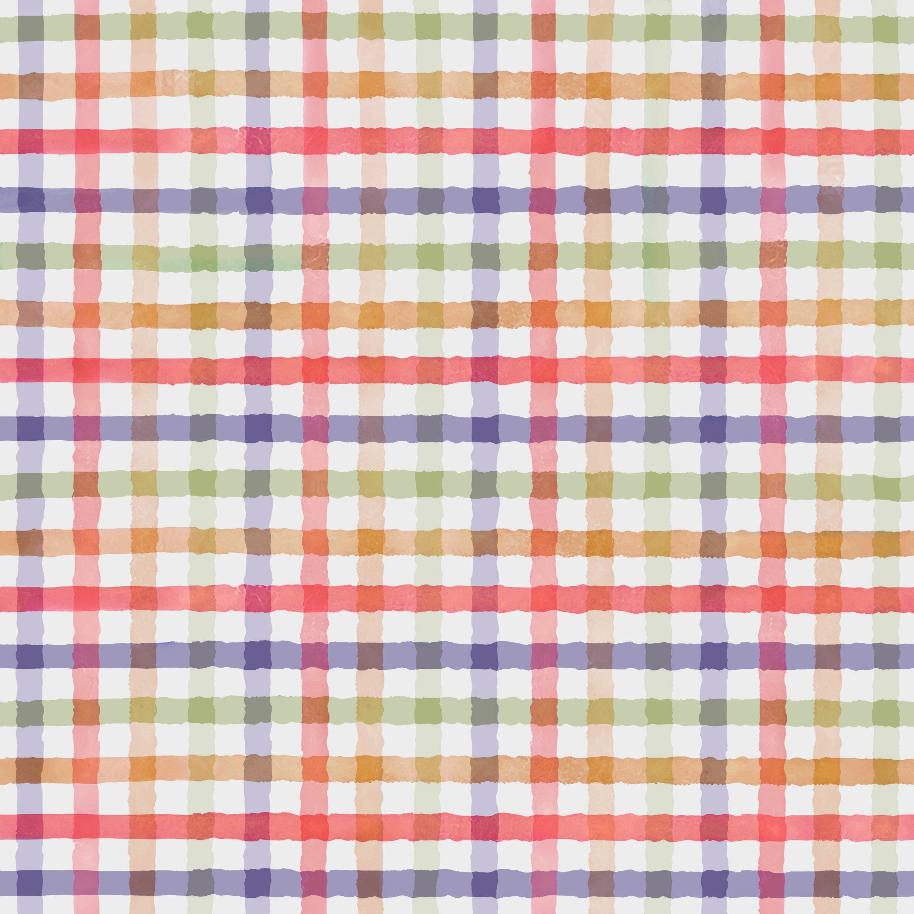 Hand-Painted Colorful Checkered Watercolor Rainbow Gingham Plaid Wallpaper.