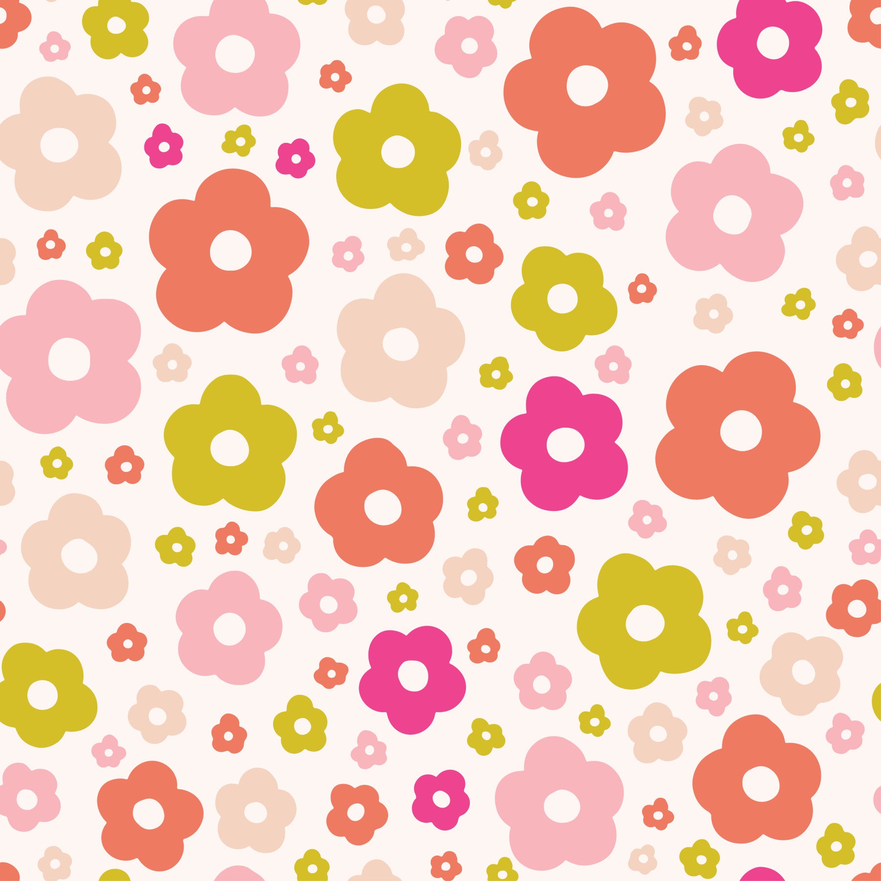Bring a touch of sunshine and happiness to your space with this delightful wallpaper. The design showcases a scattered arrangement of charming daisies in a variety of warm and inviting colors. Soft pinks, corals, and golds blend seamlessly with a bright white background, creating a light and airy atmosphere. This wallpaper's simple yet elegant design is both playful and sophisticated, making it ideal for bedrooms, nurseries, or any space that could benefit from a happy and uplifting mood. Its versatility makes it a perfect addition to modern or retro-inspired interiors.