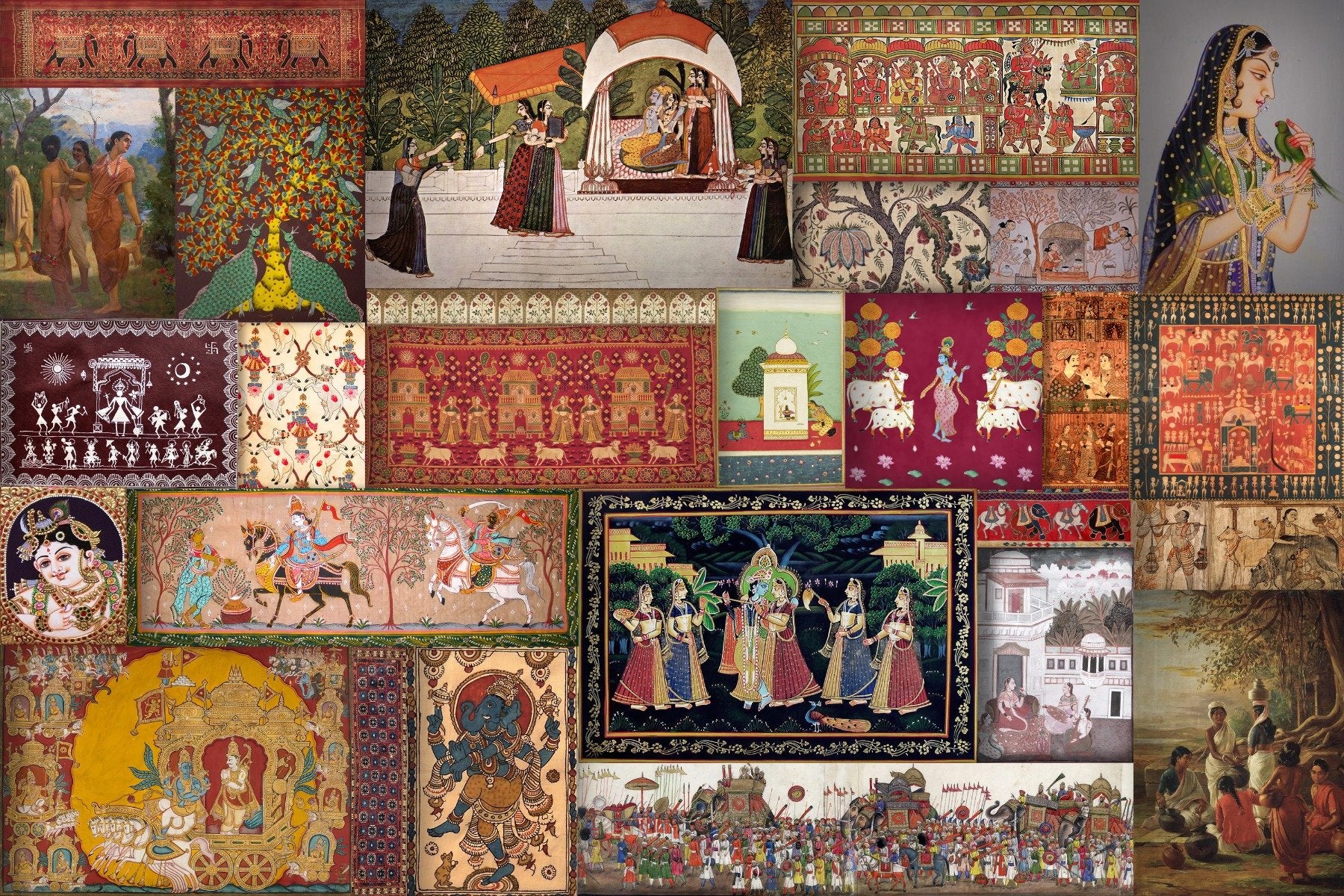 Artistic Indian epochs mural wallpaper for timeless decor.