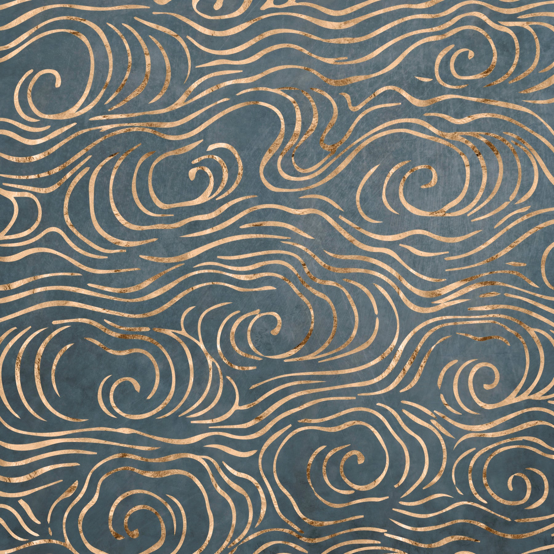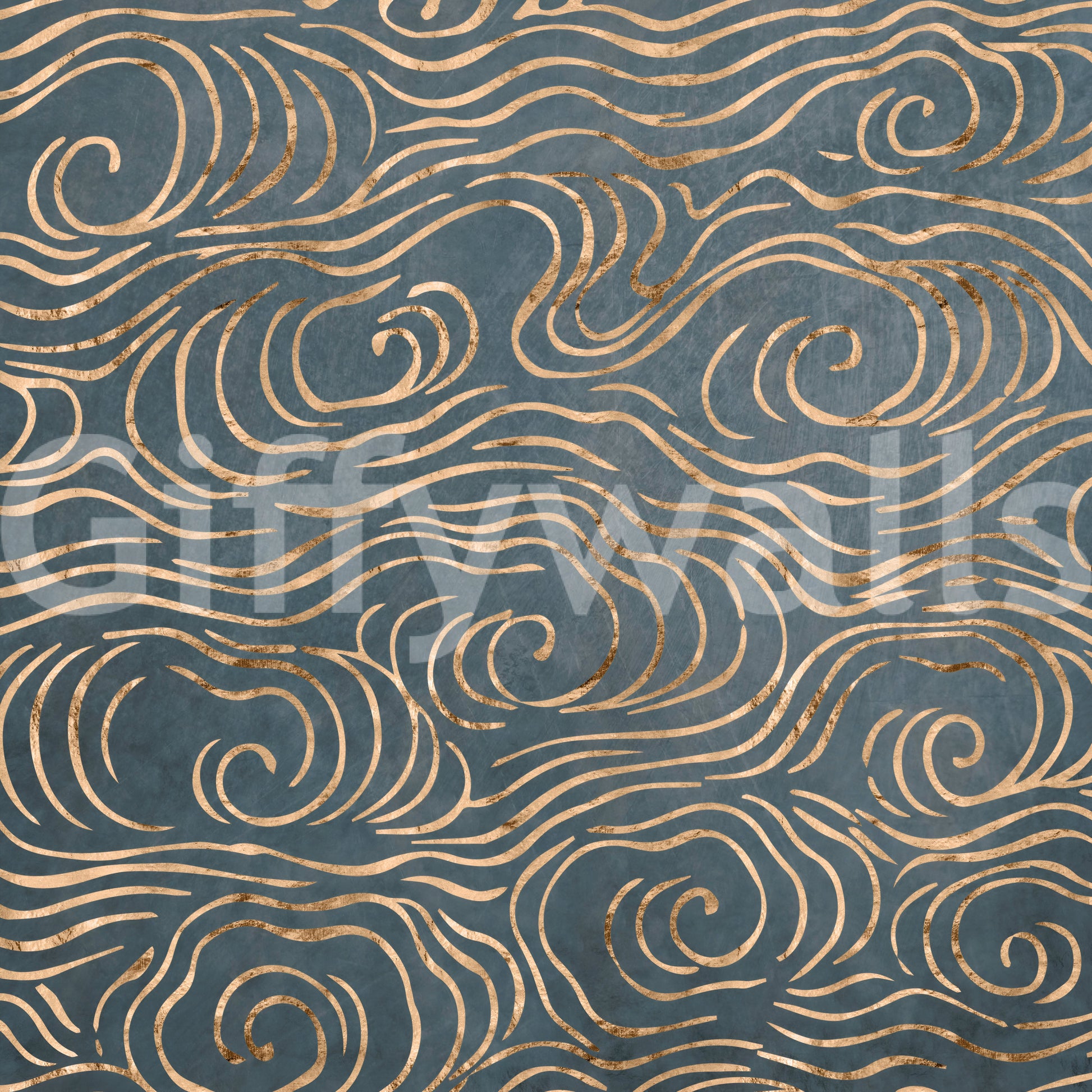 The petrol hued Japanese Waves wallpaper will imbue your room with a moody, sophisticated atmosphere. The intricate, lined pattern is truly stunning; beautiful swirly shapes luxuriously spread out and are touched by golden metallic effect accents.. This Japanese wallpaper creates an air of alluring mystery. It will accentuate light and dark colors alike, transforming any room into an elegant escape. With clean lines and a bold design, this wallpaper is sure to captivate. Let the Japanese Waves wallpaper invigorate your home with beauty and Japandi style.