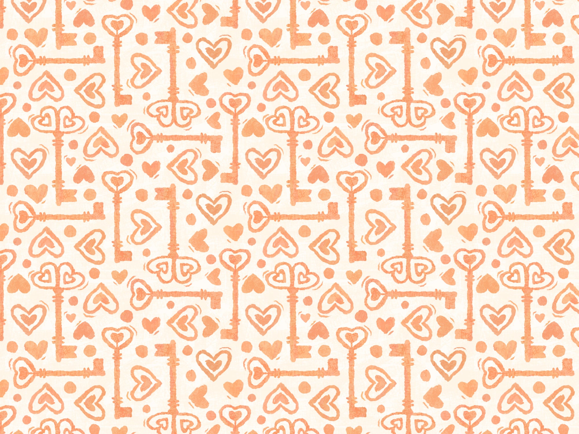 Peach-toned wallpaper with hearts and keys