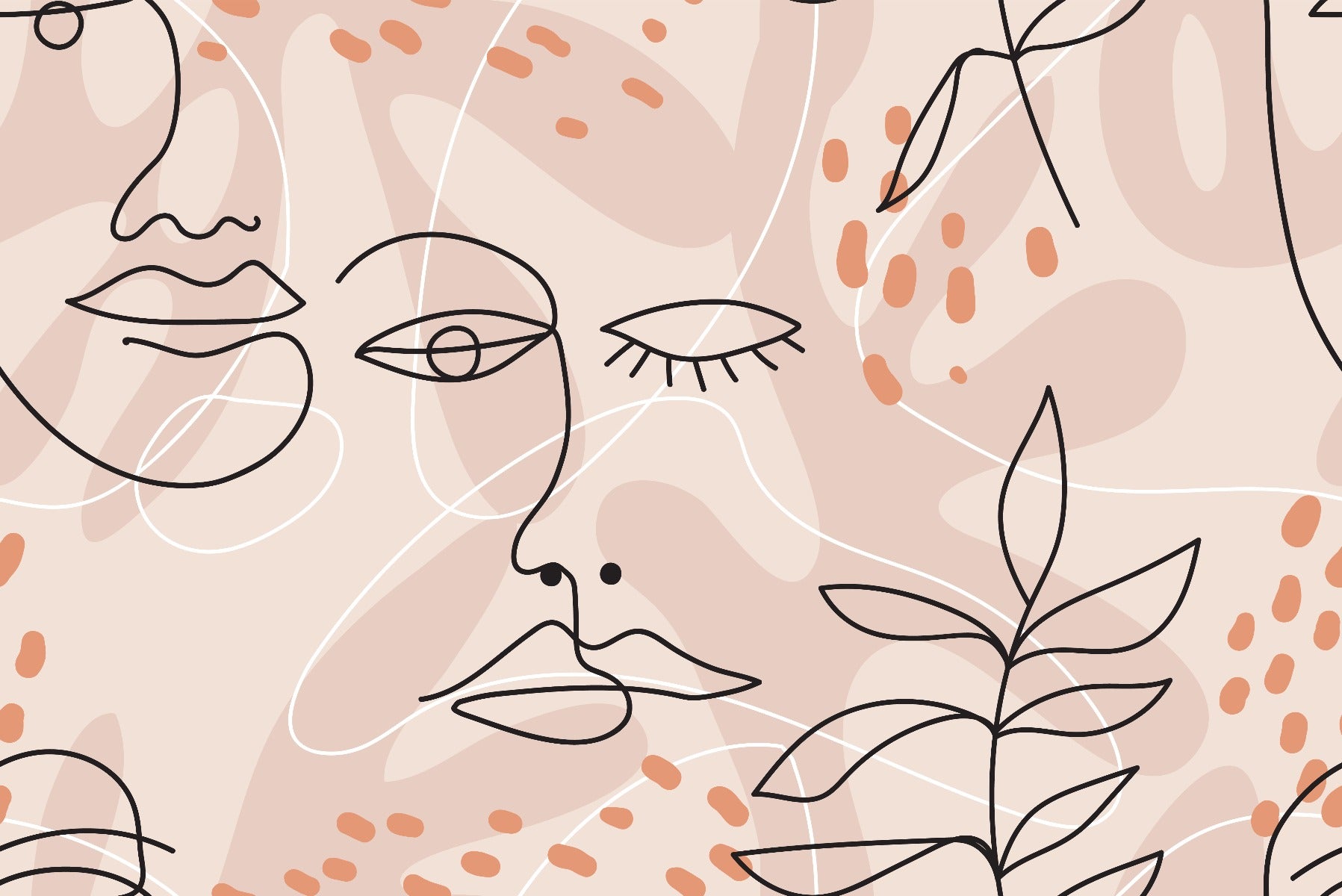 Large Human Face Line Pink Wallpaper Murals - Giffywalls