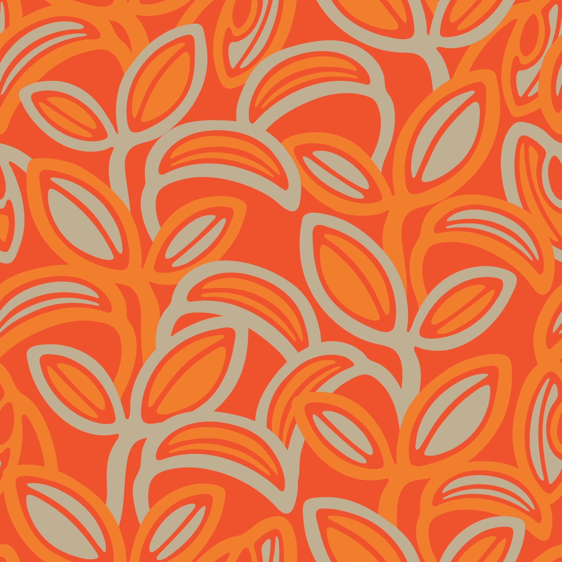Surround yourself with the Mid Century Modern retro groovy style of this Leaf Laugh Love botanical wallpaper that radiates positive energy. This design features an organic pattern of stylized leaves in a vibrant vintage color palette showcasing light orange and warm beige on burnt orange. The groovy free-flowing shapes evoke a sense of Summer carefree joy, reminiscent of the optimistic spirit of the 1970s. Let this wallpaper inspire laughter, love and good vibes in your space with its playful yet sophisticated design and pop of bright warm color. This pattern design is also available in Other Colourways too! Original wallpaper pattern design by Jackie Tahara of UnBlink Studio.