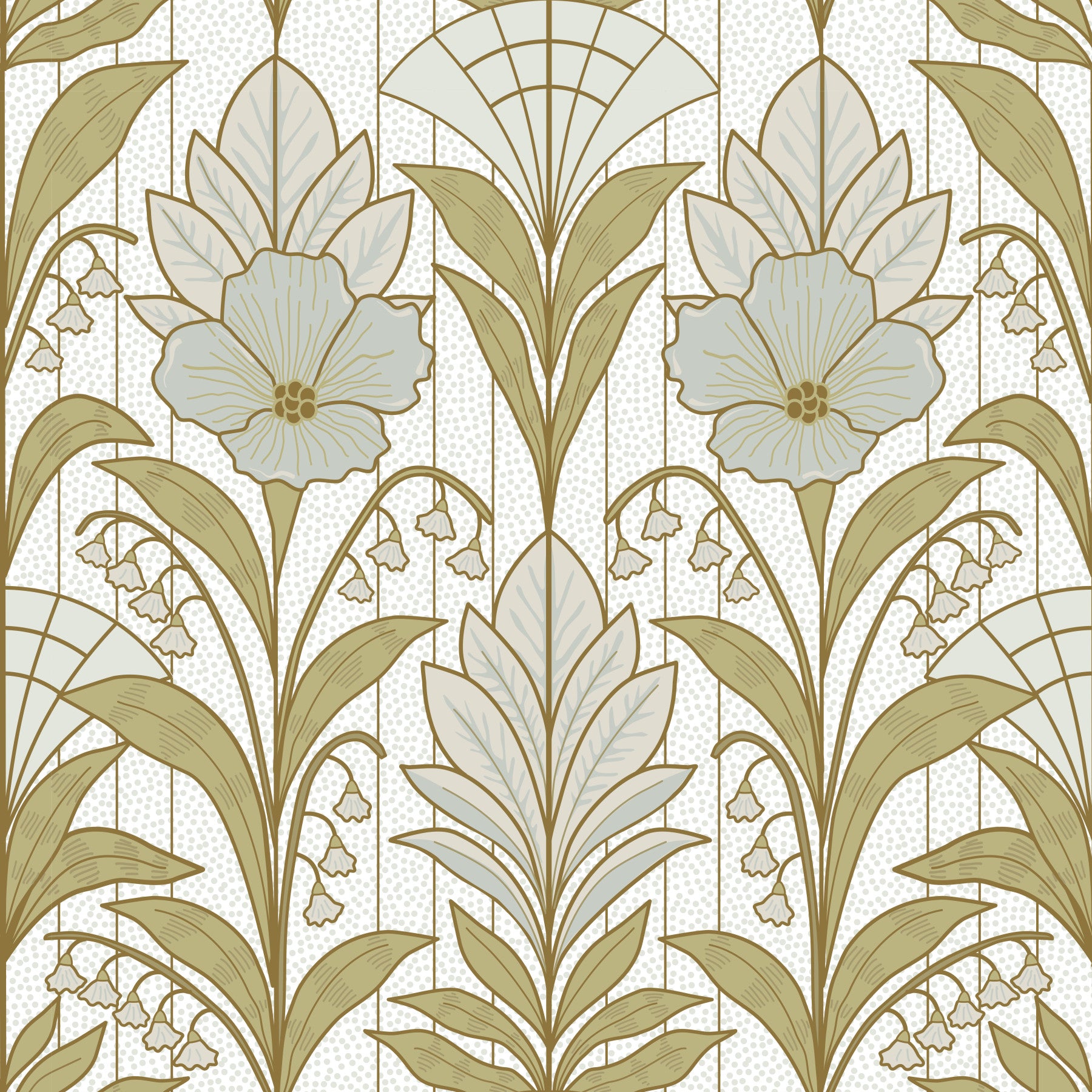 A beautiful Art Deco floral wallpaper mural featuring light lily of the valley.