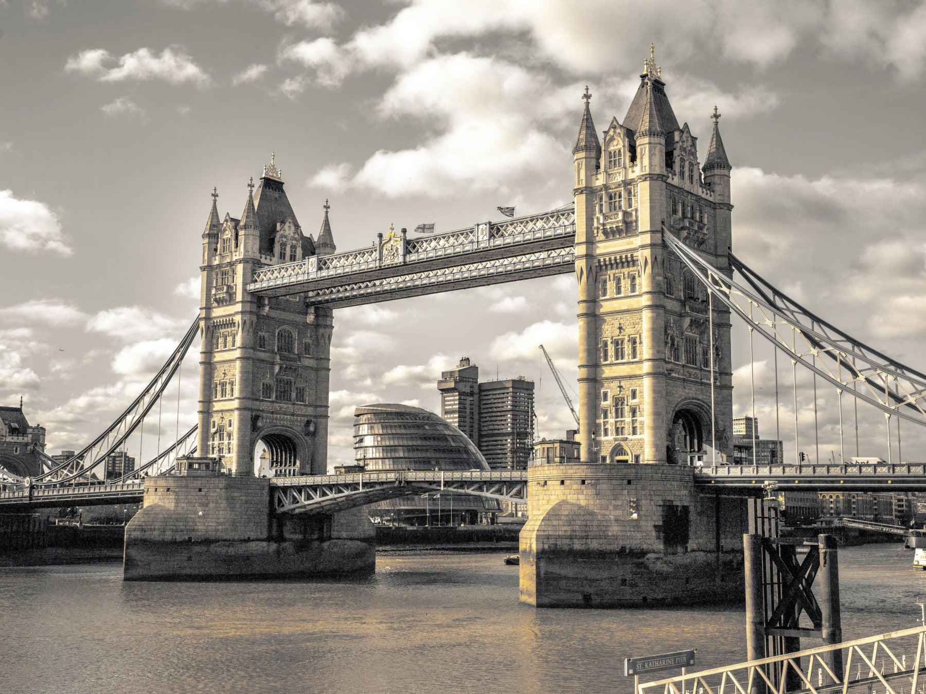 Tower Bridge, London. Immerse yourself in the grandeur of London with this stunning wallpaper featuring the iconic London Bridge. The image captures the architectural marvel in a timeless light, showcasing the bridge's intricate details and imposing presence against a cloudy sky. The monochromatic palette, with subtle hints of warmth, adds a touch of vintage elegance, making it a sophisticated addition to any digital space. Witness the perfect blend of historical charm and modern London backdrop, creating a captivating visual experience. This wallpaper brings a sense of history and British pride to your screen, ideal for those who appreciate architectural wonders and the timeless beauty of London's landmarks. Let the London Bridge transport you to the heart of England's capital, every time you glance at your device.