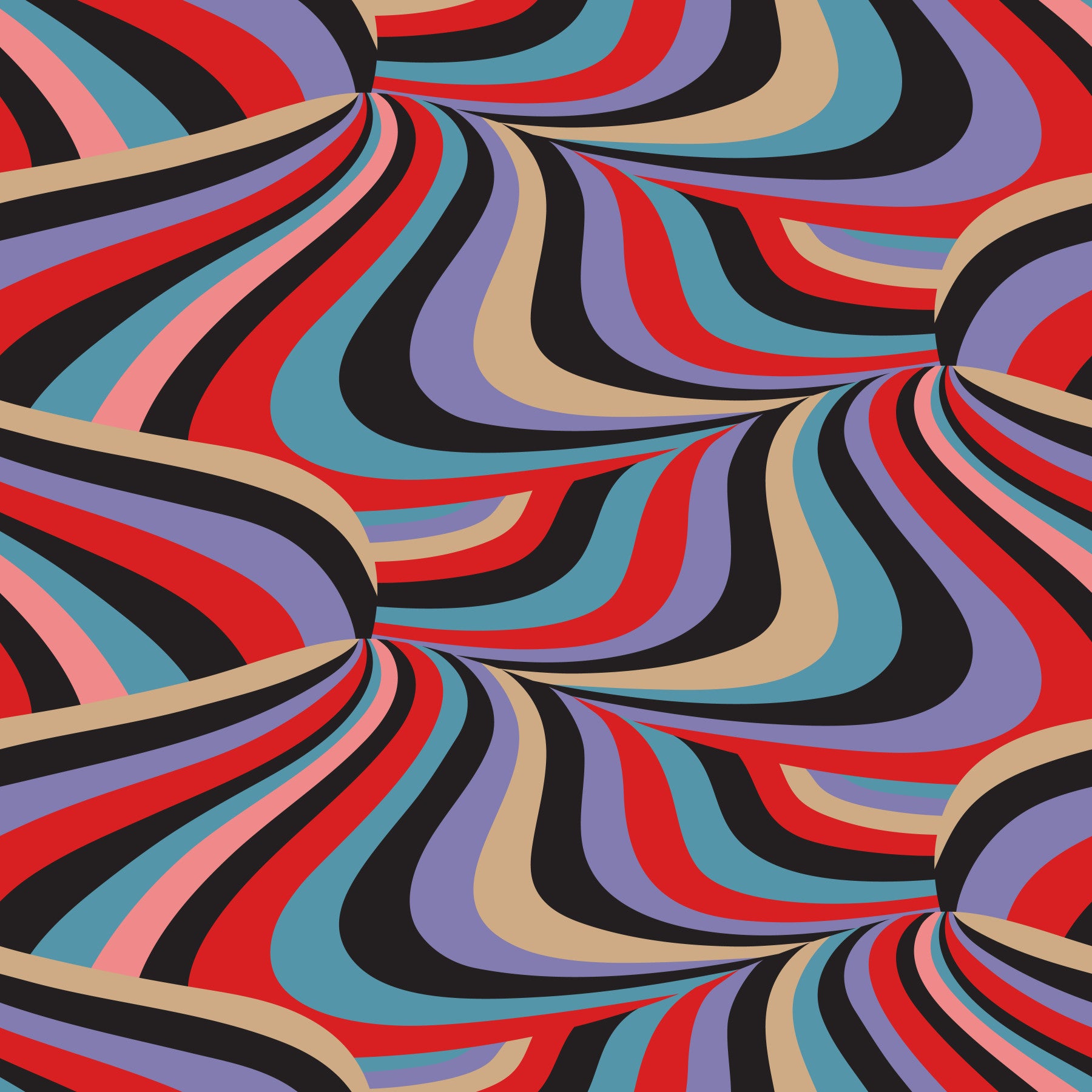 Swirling Groovy Retro Wallpaper – Dynamic abstract mural of marbled stripes in vivid multi-colored tones.