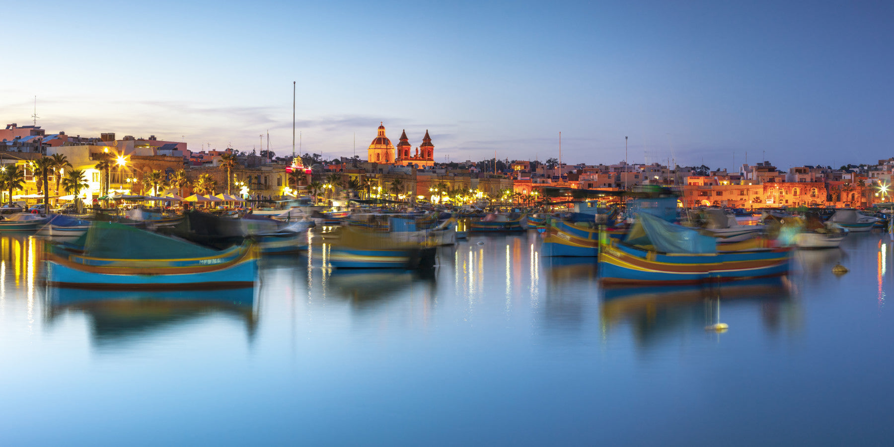 The Marsaxlokk Harbour Wall Mural gives your home a feeling of classic style and peaceful beauty. This mural wallpaper shows a beautiful photograph of the charming Marsaxlokk fishing village at dusk. The calm water reflects the colorful boats and the glowing lights of the town. This mural is a simple way to get a unique and elegant look for any room. This high-quality wallpaper for walls is ideal for a living room, office, or dining area.