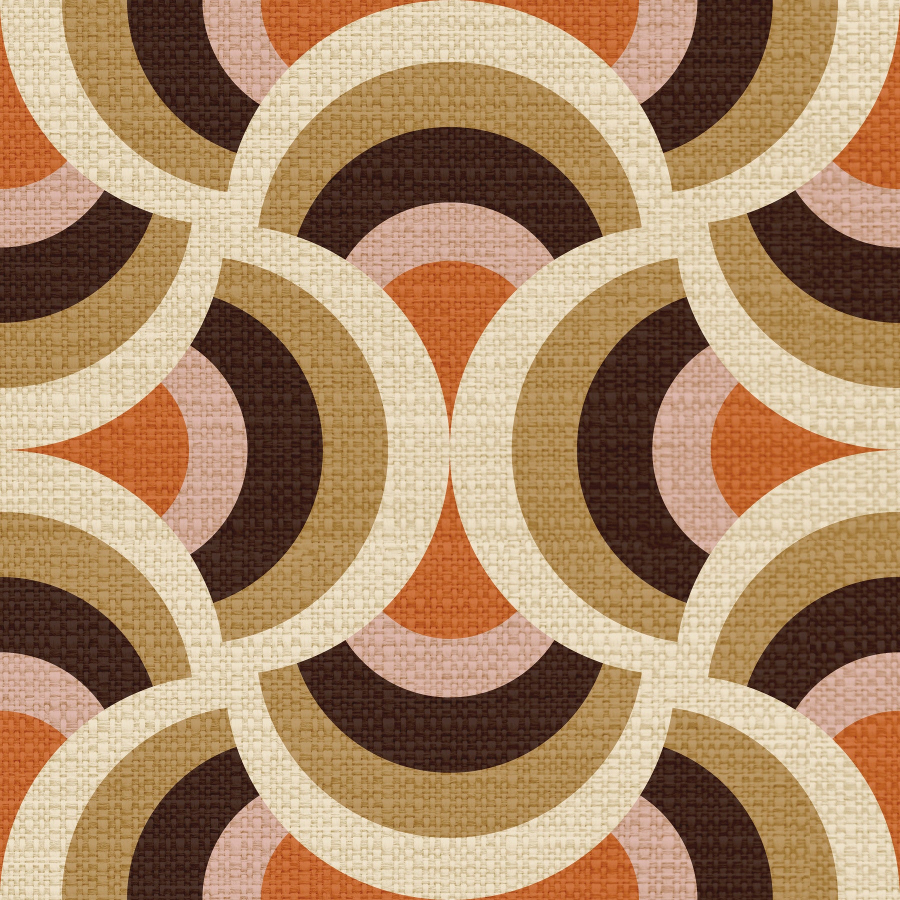 This eye-catching design features layered arcs that create visual rhythm. The color scheme includes earthy tones, offering warmth and a vintage look. This wallpaper for walls brings a touch of mid-century style to any room. Imagine this in your bedroom, hallway or living room. The versatile design suits a range of decor, including modern, rustic, and bohemian. The subtle texture adds an inviting feel to interiors.