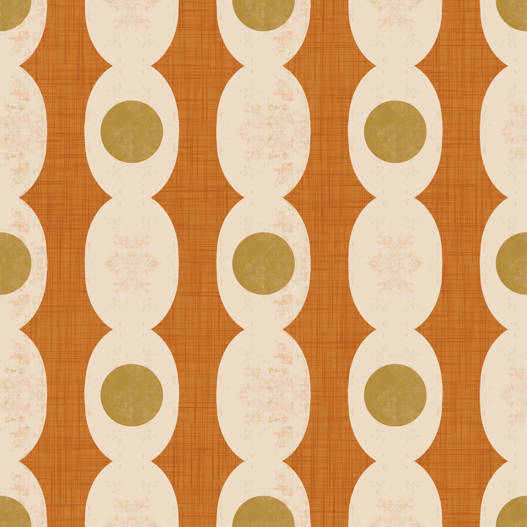 Bring vintage charm to your home with this eye-catching wallpaper. The repeating pattern of curved shapes over a textured background offers a cool retro feeling. Its color scheme, with warm orange and neutral tones, adds cozy feeling. This design provides character to a living area, dining area, or study. Embrace a nostalgic design and transform your interiors with wallpaper for walls!