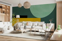 Introduce an air of artistic simplicity with this minimalist geometric wallpaper. A sophisticated blend of deep greens, mustard, and cream shapes creates intrigue, bringing texture to any room. This wallpaper for walls suits a variety of spaces, from living rooms to bedrooms, and adds character to your space. This design enhances contemporary interiors, and the clean lines complement minimalist furniture. It’s an easy way to bring a contemporary touch to your home.