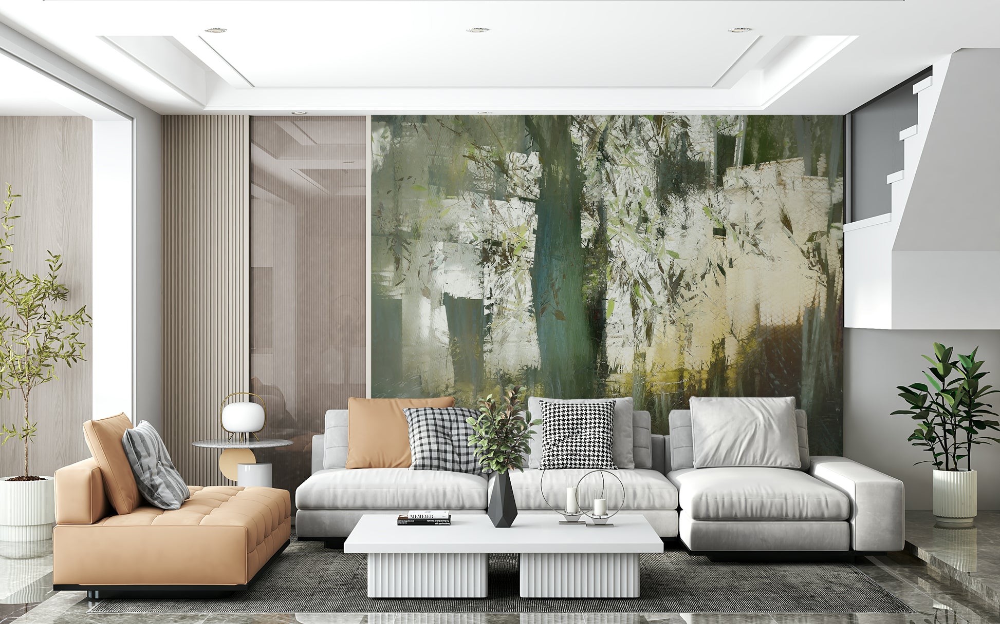 Transform your space with this captivating design that blends nature and abstraction. It features a misty forest scene painted in a soft, muted color palette. Light catches the trees, giving a dreamy and ethereal vibe. The blurred effect adds depth and texture, making it an ideal wallpaper for walls in bedrooms, living rooms, or hallways. It complements interiors with a touch of tranquility and adds an artistic edge to any room.