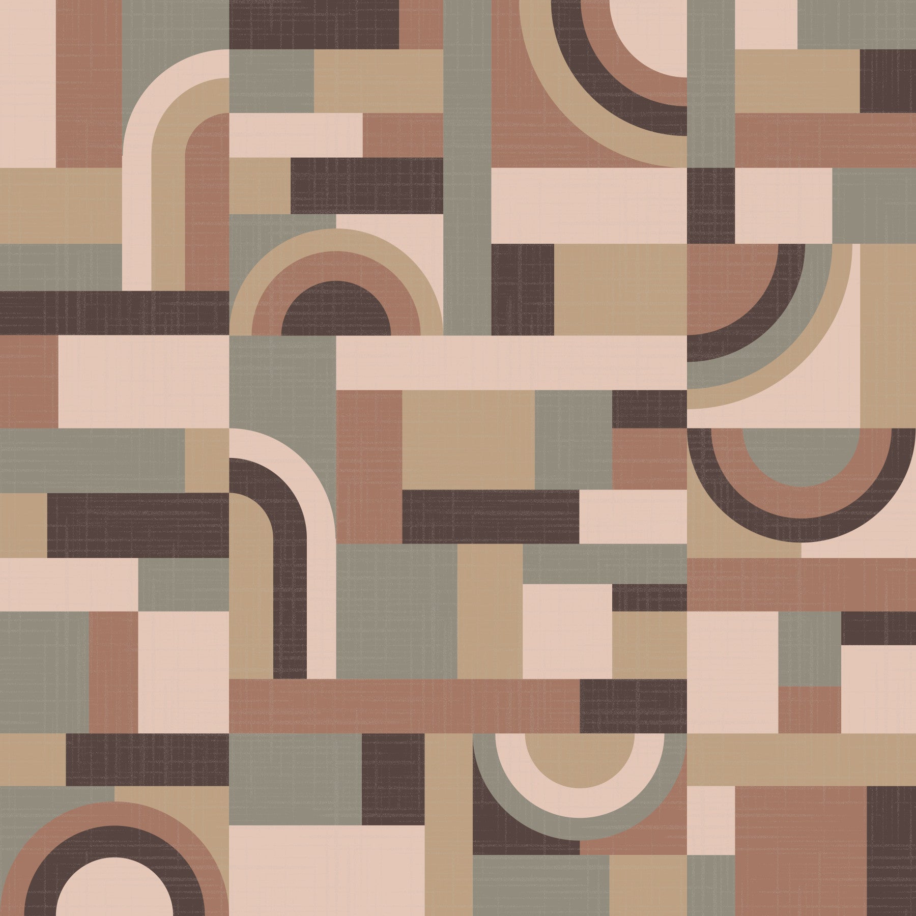 Indulge in the soothing harmony of Mocha Mousse Fraseggio a geometric wallpaper that evokes the delicate complexity of a perfectly layered dessert. This design plays a beautiful symphony of earthy tones – from rich chocolate browns to creamy beiges and soft taupes, reminiscent of a luscious mocha mousse. Rectangles, squares, and graceful semi-circles intersect and overlap, creating a dynamic yet calming visual experience. The subtle textured finish adds depth and dimension, inviting a tactile sensation even on screen. "Mocha Mousse Fraseggio" is a sophisticated choice for those seeking a touch of warmth and modern elegance. Let this understated masterpiece transform your digital space into a haven of tranquility and refined style.