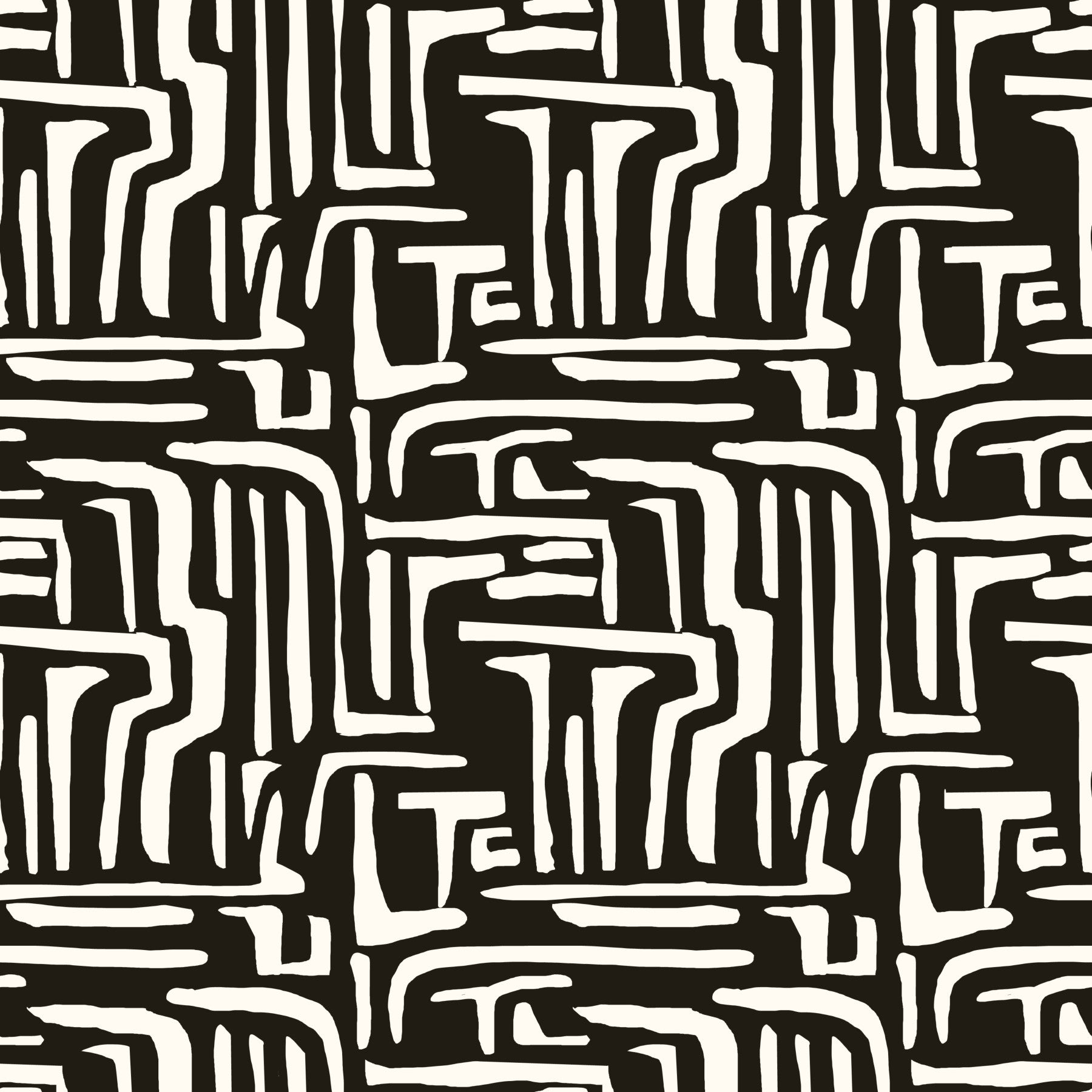 Geometrical black and ivory motif, unique Modern Tribal Maze aesthetic.