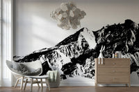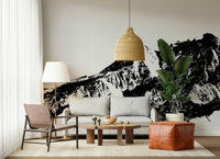 Bring nature's drama indoors with this black and white mountain range. Striking in its simplicity, this design evokes a sense of scale and rugged terrain. The monochrome palette creates a sophisticated look. This wallpaper for walls works well in a living room, study, or office, establishing a space that is both impressive and calming. Consider it for a feature wall to create a focal point in any room and add a modern touch.
