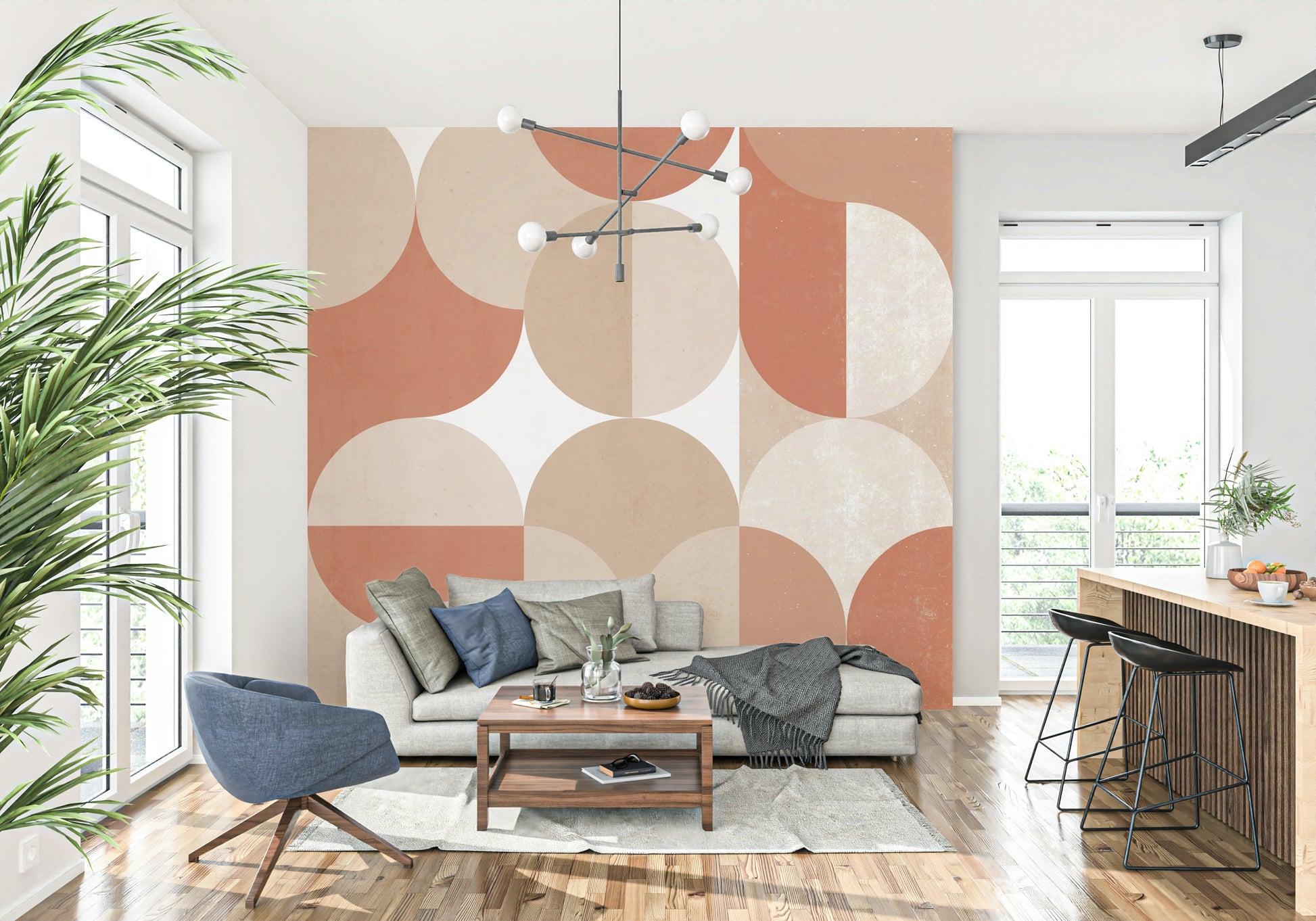 Wall mural with gentle warm-toned circles creating a minimalist, contemporary look.
