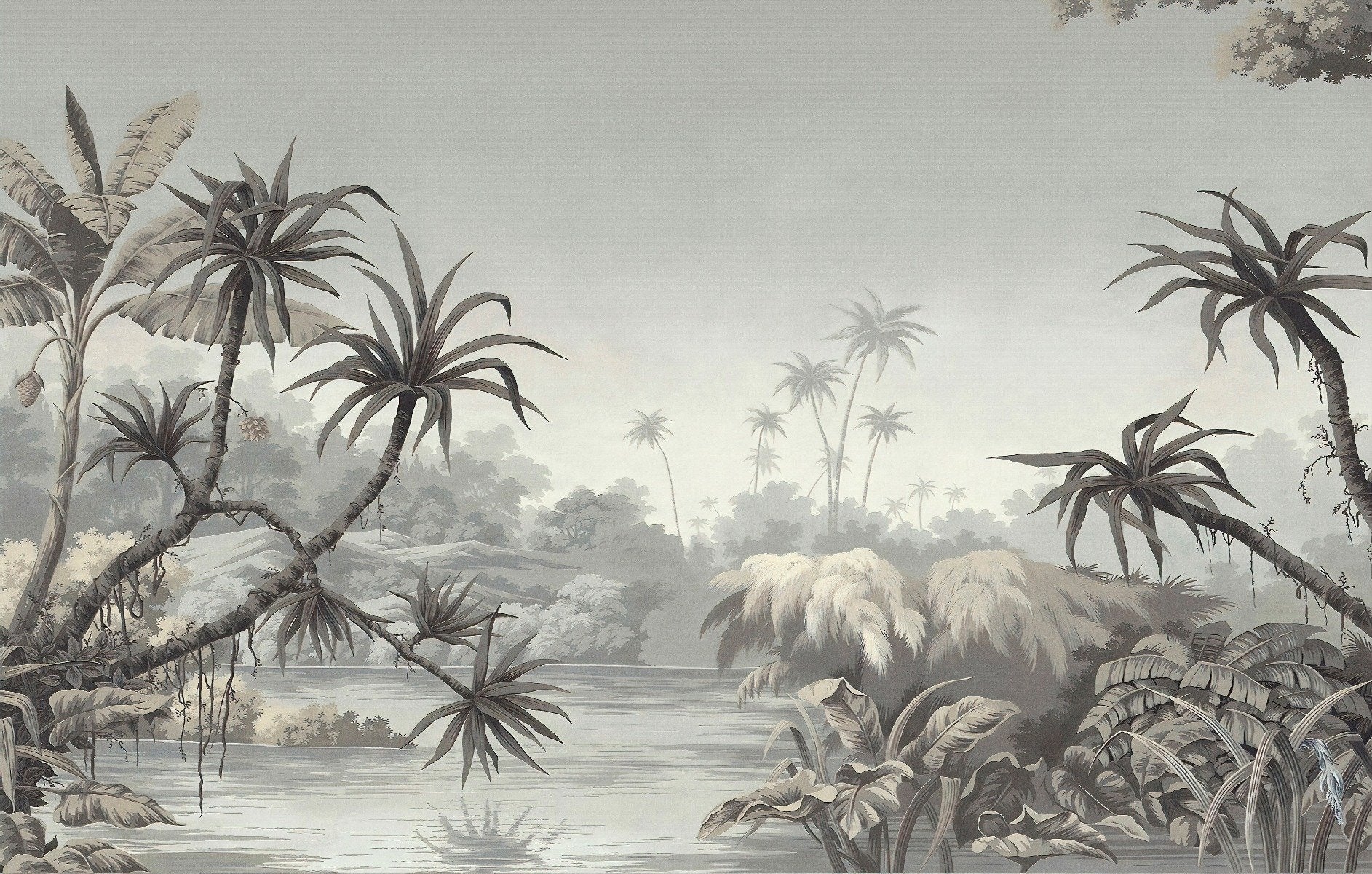 Subtle tropical countryside wallpaper design