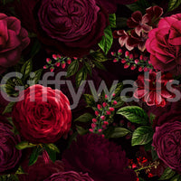 Embrace the mysterious beauty of 'Nocturne Blooms,' a floral wallpaper where deep crimson roses and burgundy blossoms intertwine under the cloak of night. The rich color palette and detailed rendering create a dramatic and opulent feel, perfect for adding a touch of elegance and intrigue to any space. The seamless design ensures a cohesive and immersive experience, transforming any room into a haven of sophisticated mystery. Ideal for those seeking a bold statement piece that adds depth and character.
