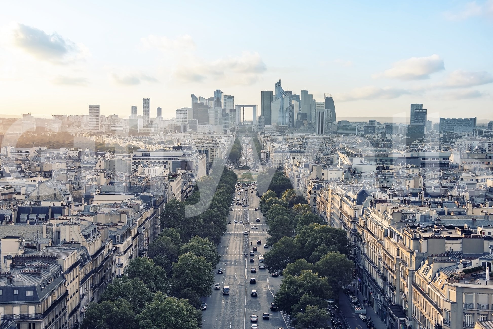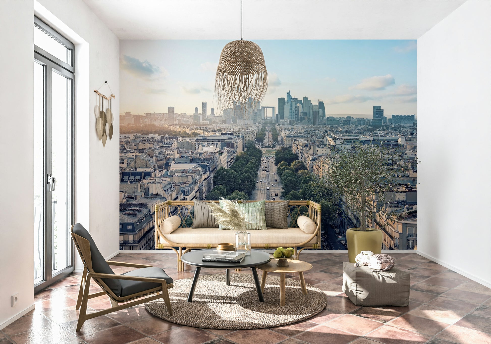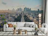 Capture the allure of Paris with this expansive cityscape wallpaper. Gaze upon tree-lined avenues and modern skyscrapers under a soft sky. The design features a palette of blues and grays, creating a serene backdrop that enhances interiors. This wallpaper for walls introduces depth to living rooms, hallways, or offices. It provides a calming and sophisticated view, transforming any room into a space of elegance and style. Bring the heart of Paris into your home and let its timeless beauty become a central feature of your decor.