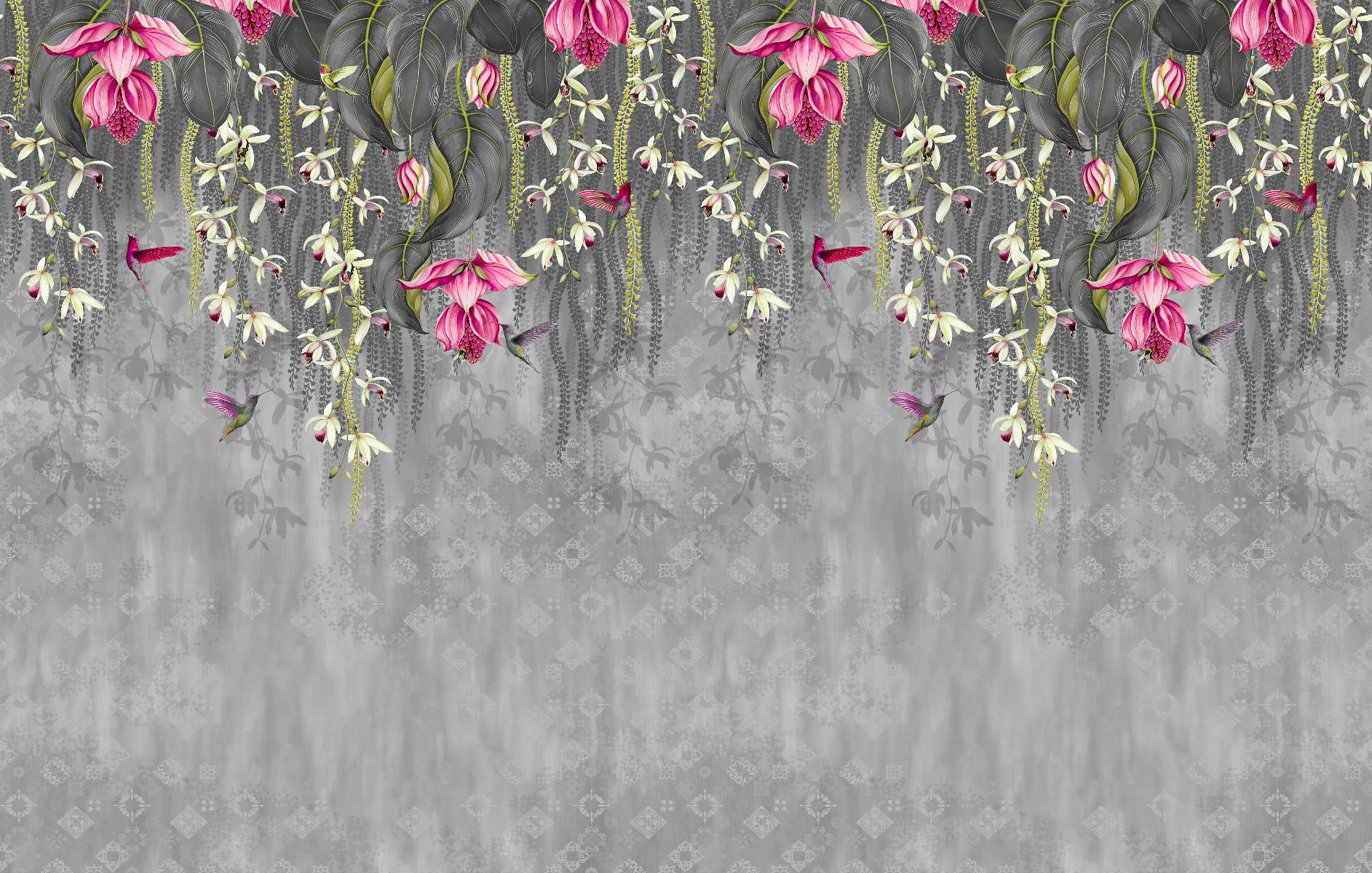 Elevate your space with the serene elegance of our Pink Blooming Flowers Design Wallpaper from Giffywalls. This exquisite mural captures the delicate allure of hanging flower blossoms, a timeless design inspired by the serene beauty of East Asian flora. Set against a calm, grey-toned backdrop, this pink flower wallpaper introduces a tranquil yet sophisticated atmosphere to any room, whether it be your living room, dining hall, or a young girl's bedroom sanctuary.