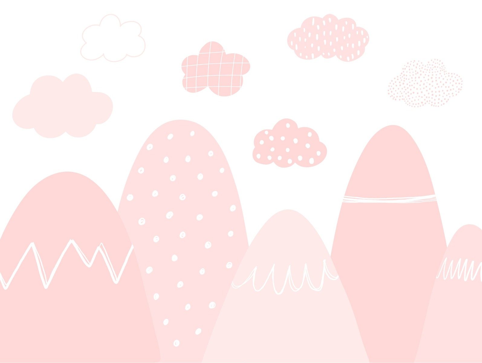 Pink mountain wallpaper with white clouds, Scandinavian style.