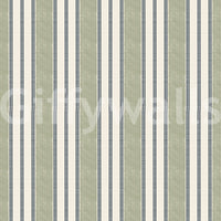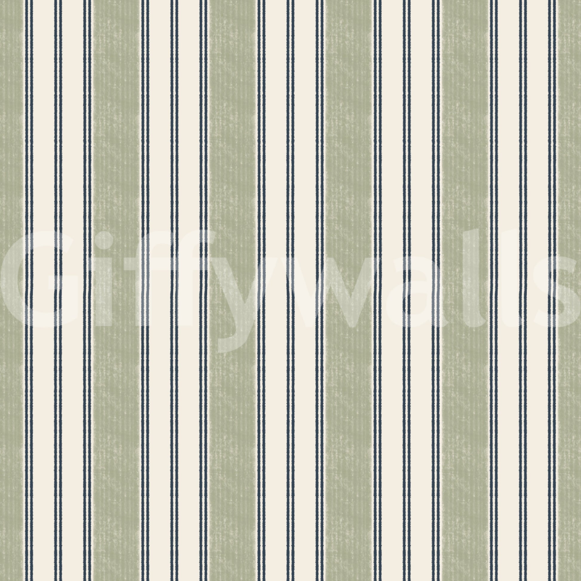 Green ticking stripe wall mural combining heritage charm with contemporary style.