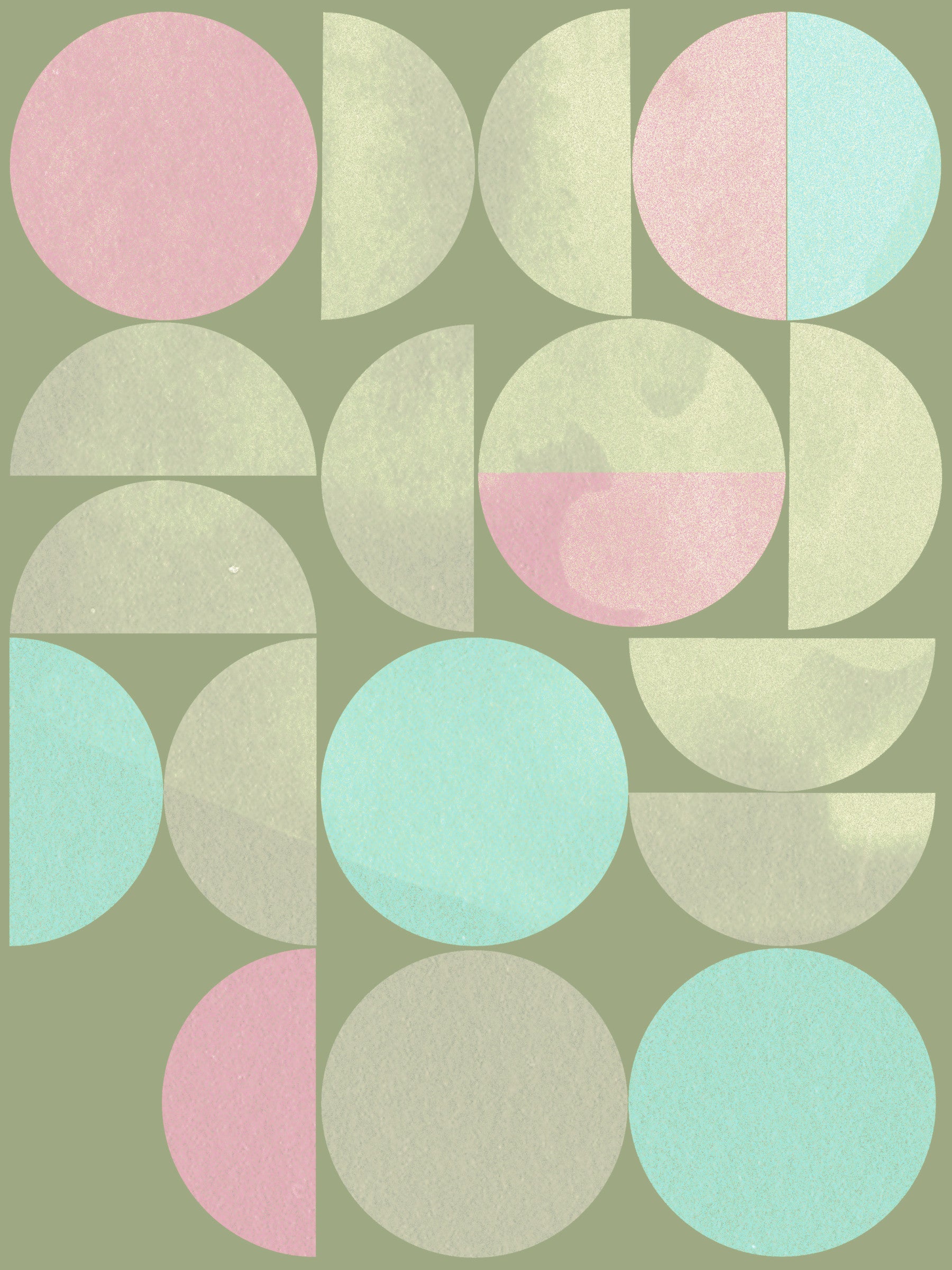 Pastel shades Quiet Geometry halves and full circles decorative wallpaper.