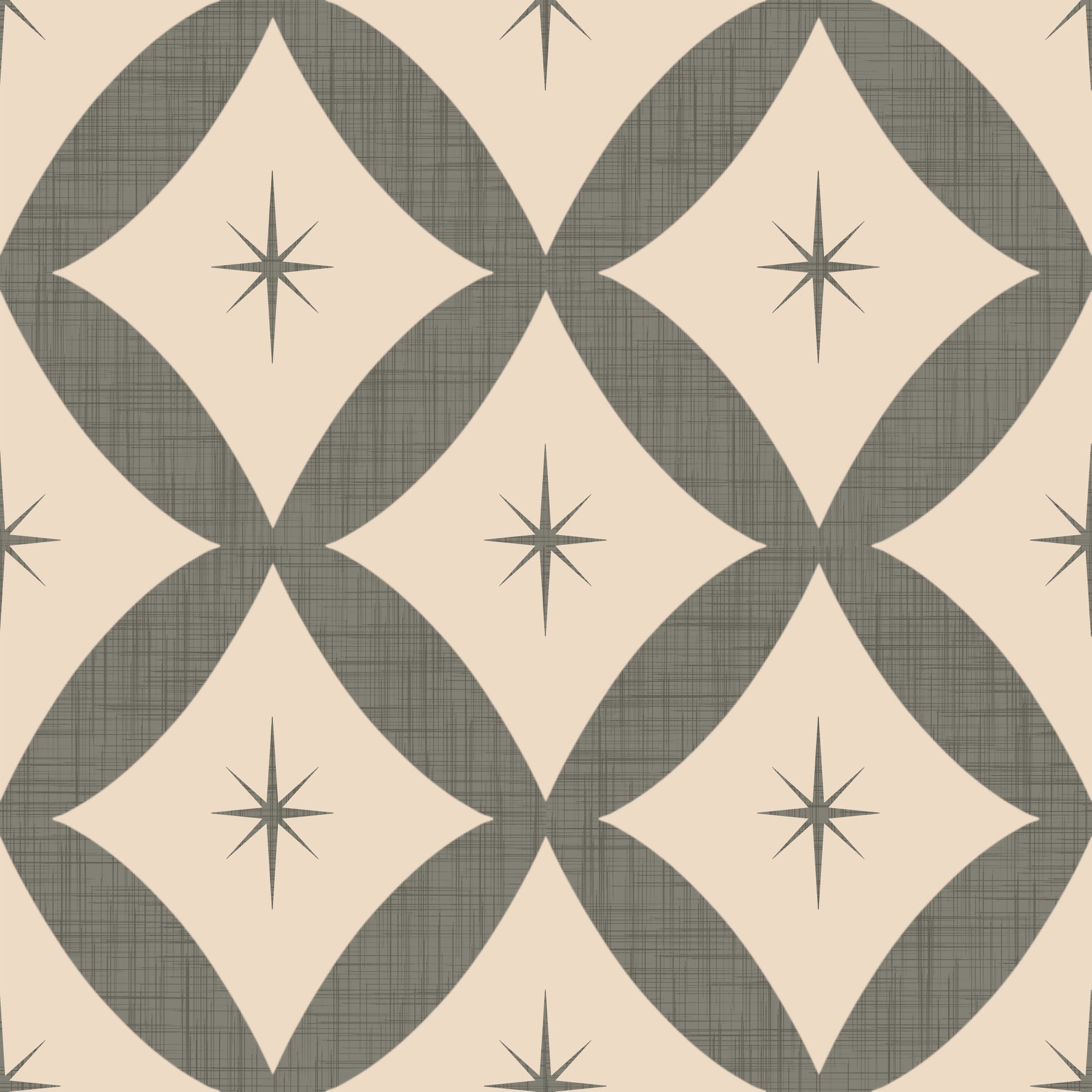 Mid-century atomic wallpaper showcasing a structured diamond design with delicate stars.