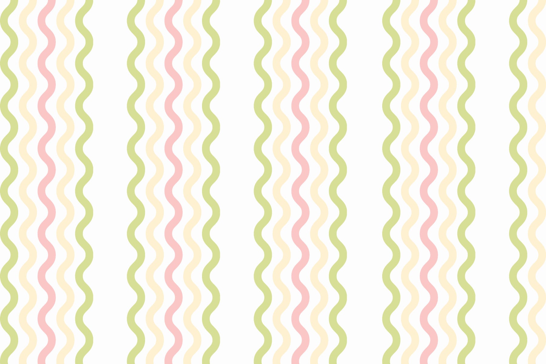 Introduce a calm and contemporary vibe to your space with this rhythmic wave pattern. The design showcases gentle, curving stripes in green, pink, and cream. This wallpaper for walls will give any room a lift, and is particularly suited to a living room, bedroom, or hallway. The subtle color palette ensures it coordinates easily with various decor styles. It gives an airy, light-hearted boost to interiors, offering a fresh, clean background.