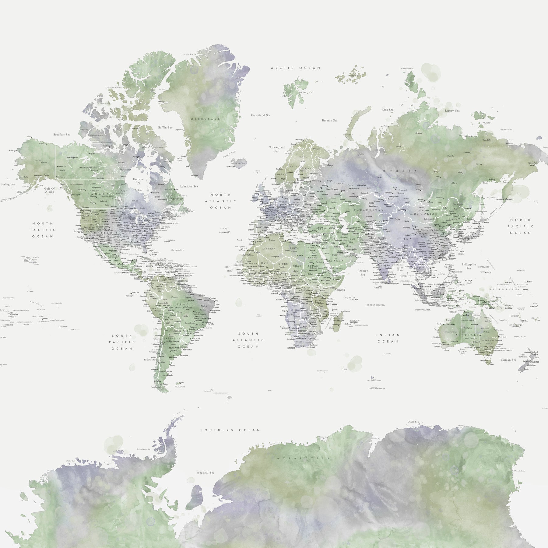 Embrace tranquility and elegance with the Sage Green Watercolor World Map Wallpaper. Designed with soft sage tones and delicate watercolor textures, this mural adds a peaceful, nature-inspired feel to any room. Detailed with clearly labeled countries and cities, it’s both beautiful and informative—ideal for home offices, bedrooms, nurseries, or study spaces. The muted green palette pairs effortlessly with minimalist, rustic, and modern décor styles. Available in peel-and-stick or traditional wallpaper options, it’s easy to apply and crafted using eco-friendly materials. Transform your walls into a serene global journey with this refined and calming map design.