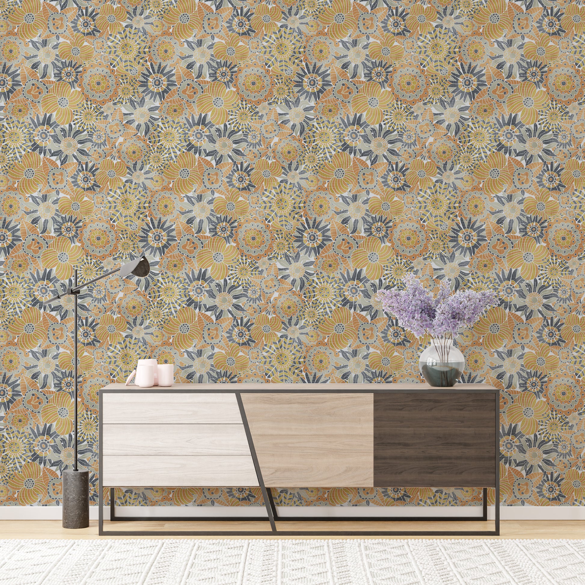 Bring a touch of Nordic charm into your home with our Scandinavian Flowers Wallpaper. Featuring a delightful mosaic of hand-drawn florals in earthy tones of ochre, charcoal, and soft grey, this wallpaper combines modern minimalism with folk-art flair. Each blossom bursts with geometric detail, creating a playful yet elegant look that suits living rooms, bedrooms, or creative workspaces. Whether you're after a cozy cottage feel or a stylish retro twist, this wallpaper sets the perfect backdrop. Easy to apply and designed for lasting beauty, it’s a fresh and joyful way to infuse your walls with Scandinavian soul and floral finesse.